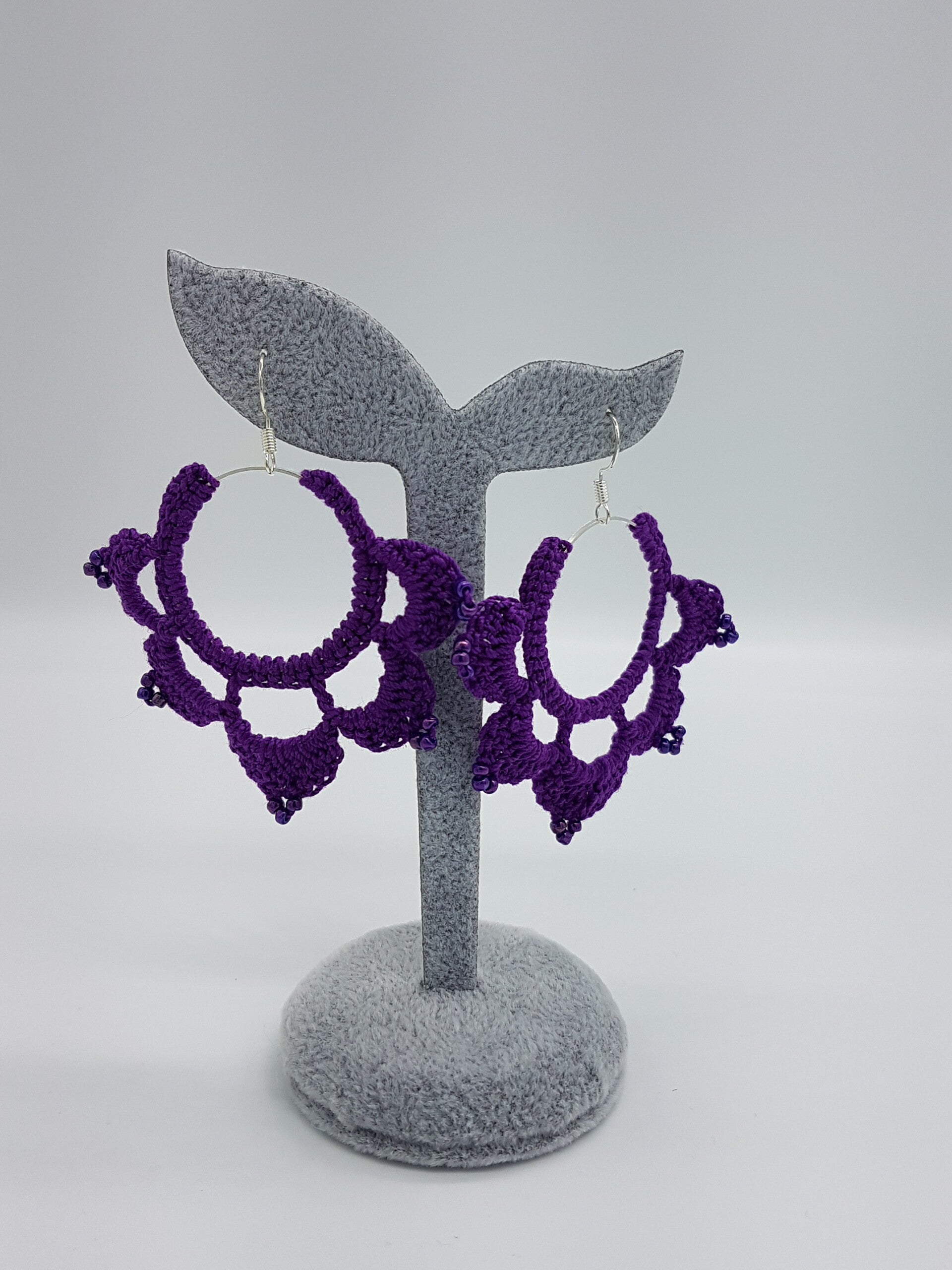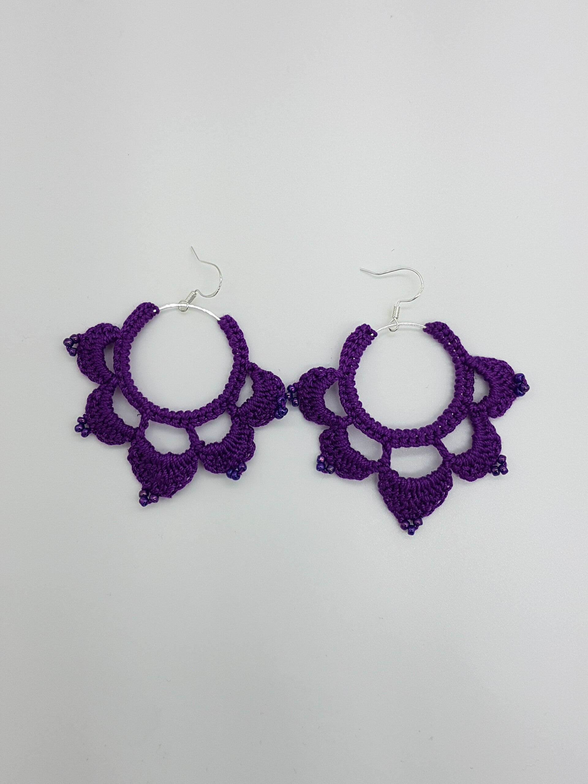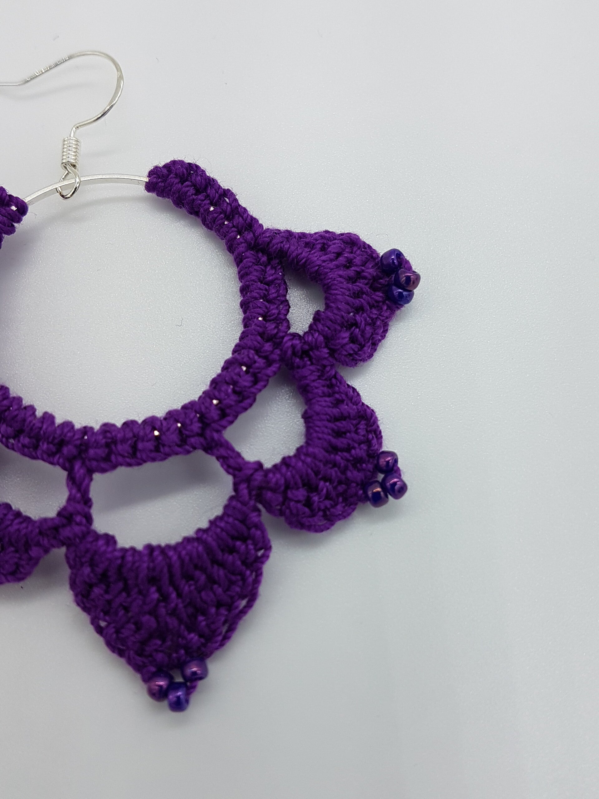 Die Ohrringe sind gehäkelt und handgemacht. Kleine Abweichungen zu den Fotos in Form, Farbe und Grösse sind deshalb möglich.