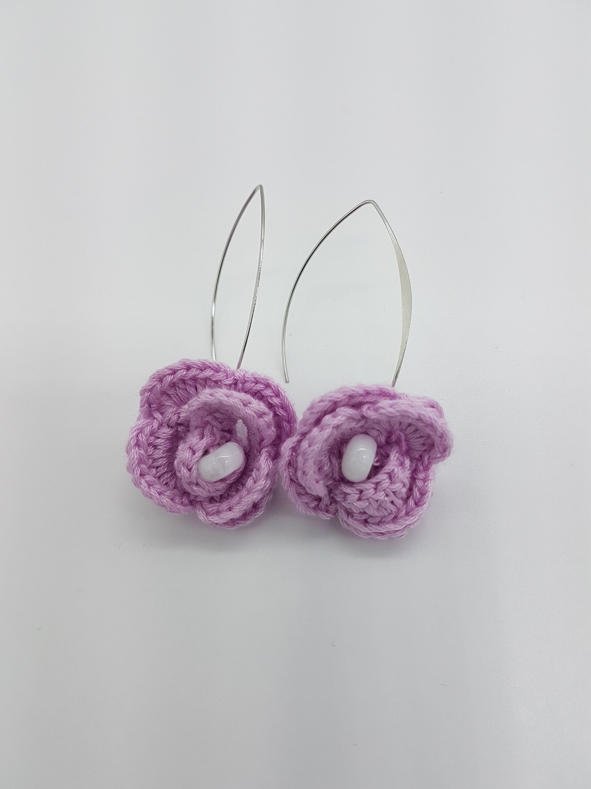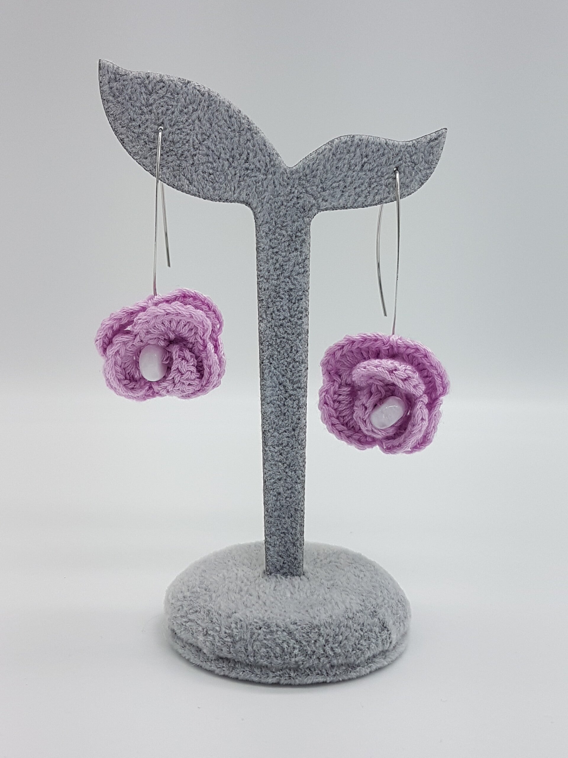 Die Ohrringe sind gehäkelt und handgemacht. Kleine Abweichungen zu den Fotos in Form und Farbe sind deshalb möglich.