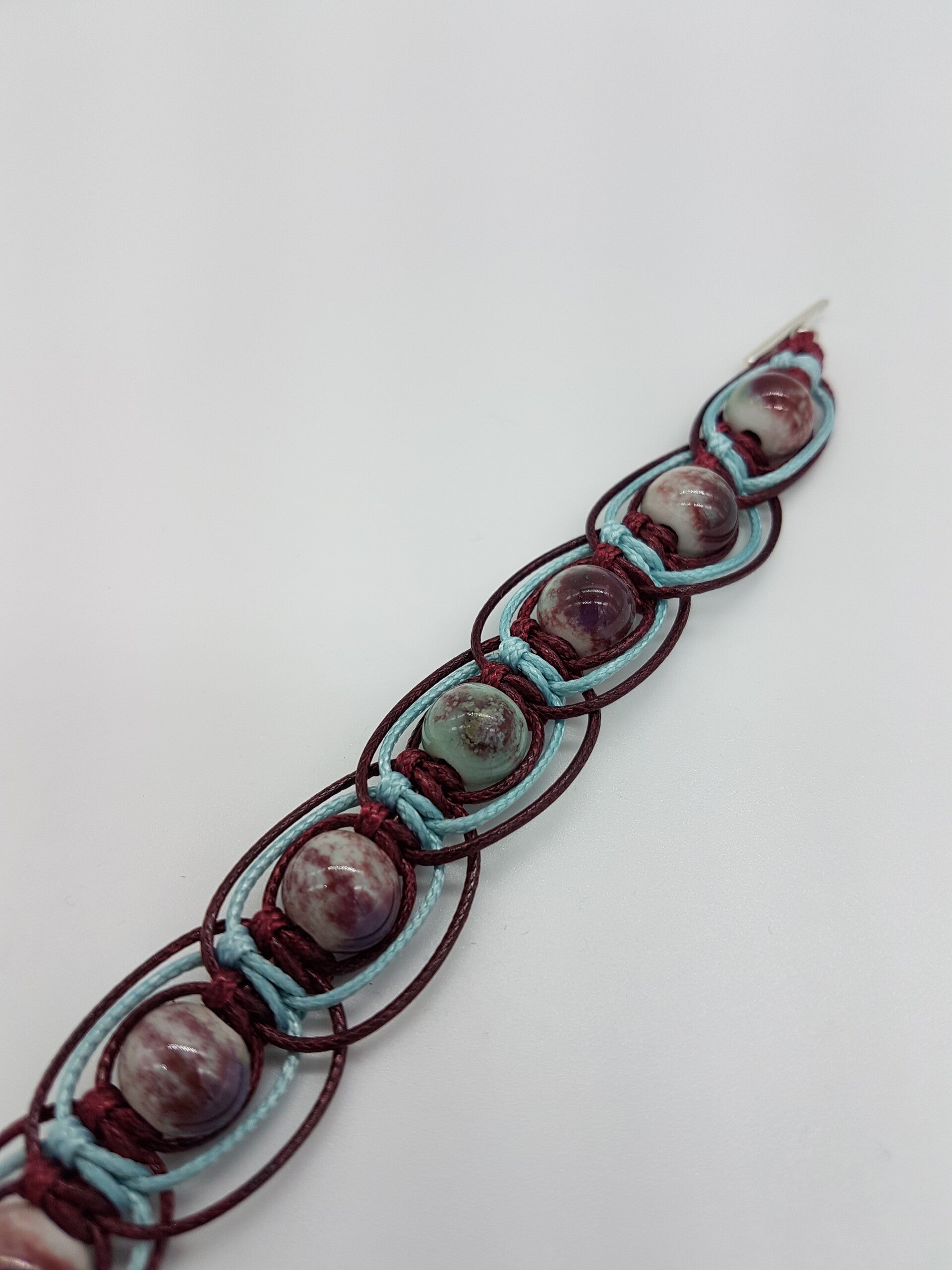 Das Armband ist geknüpft und handgemacht. Kleine Abweichungen zu den Fotos in Form, Farbe und Grösse sind deshalb möglich.