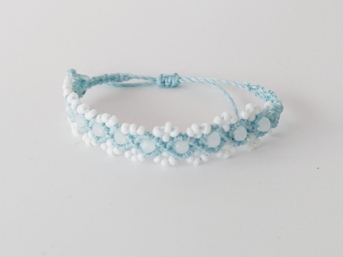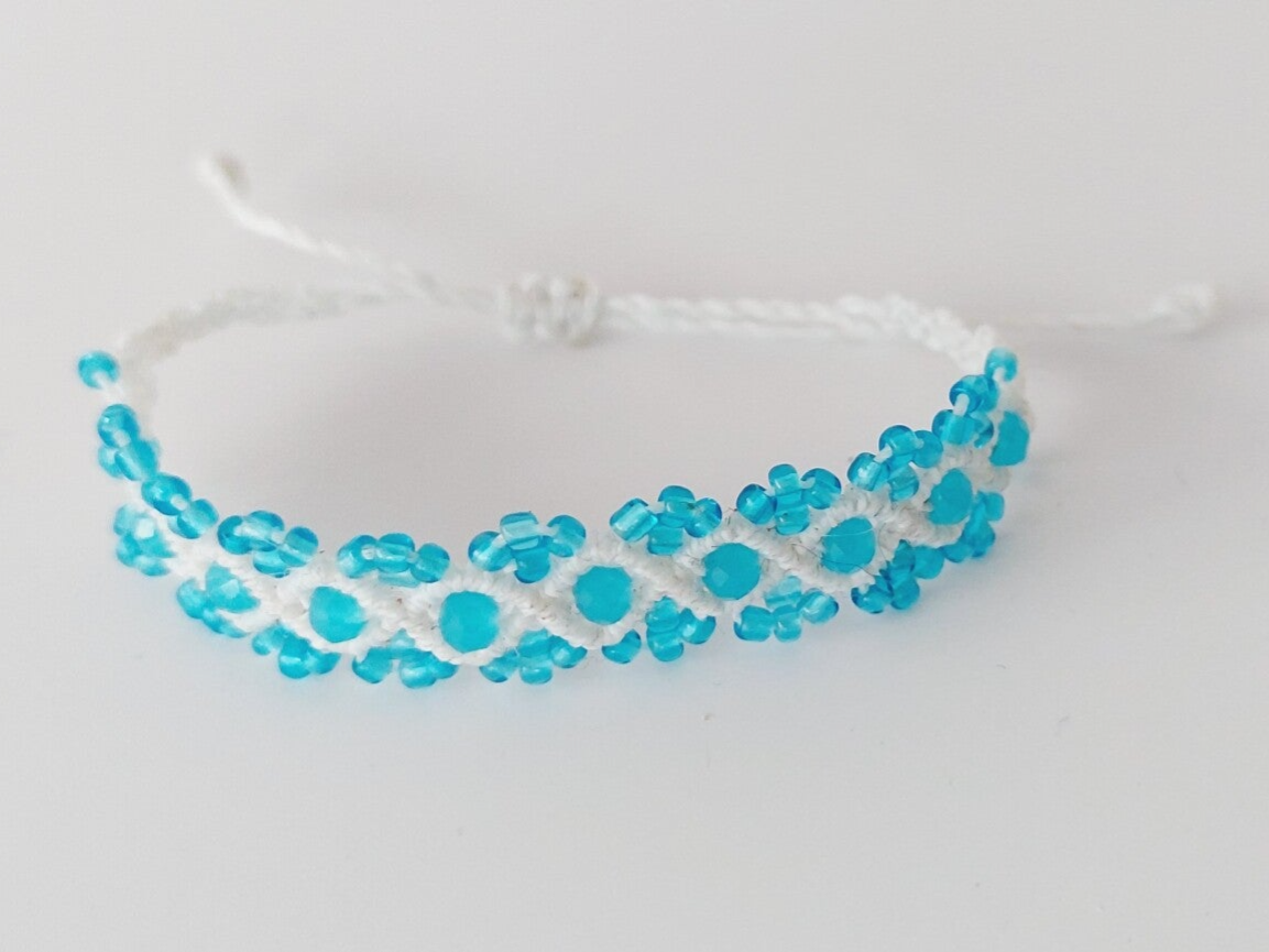 Das Armband ist geknüpft und handgemacht. Kleine Abweichungen zu den Fotos in Form, Farbe und Grösse sind deshalb möglich.