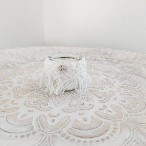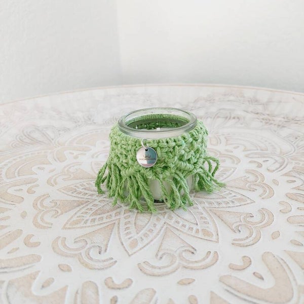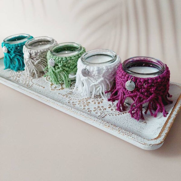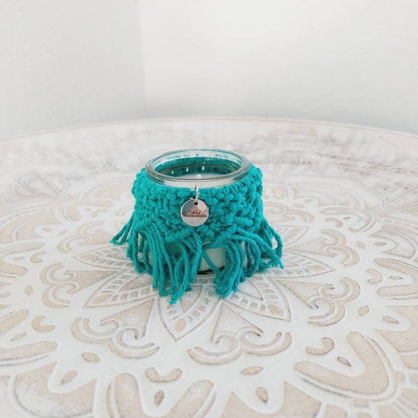 Die Makramee-Umrandung wurde von Hand geknüpft. Kleine Abweichungen zu den Fotos in Form und Farbe sind deshalb möglich.