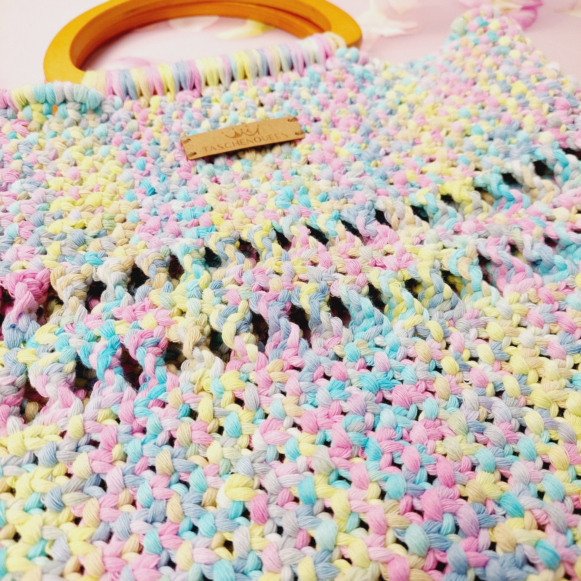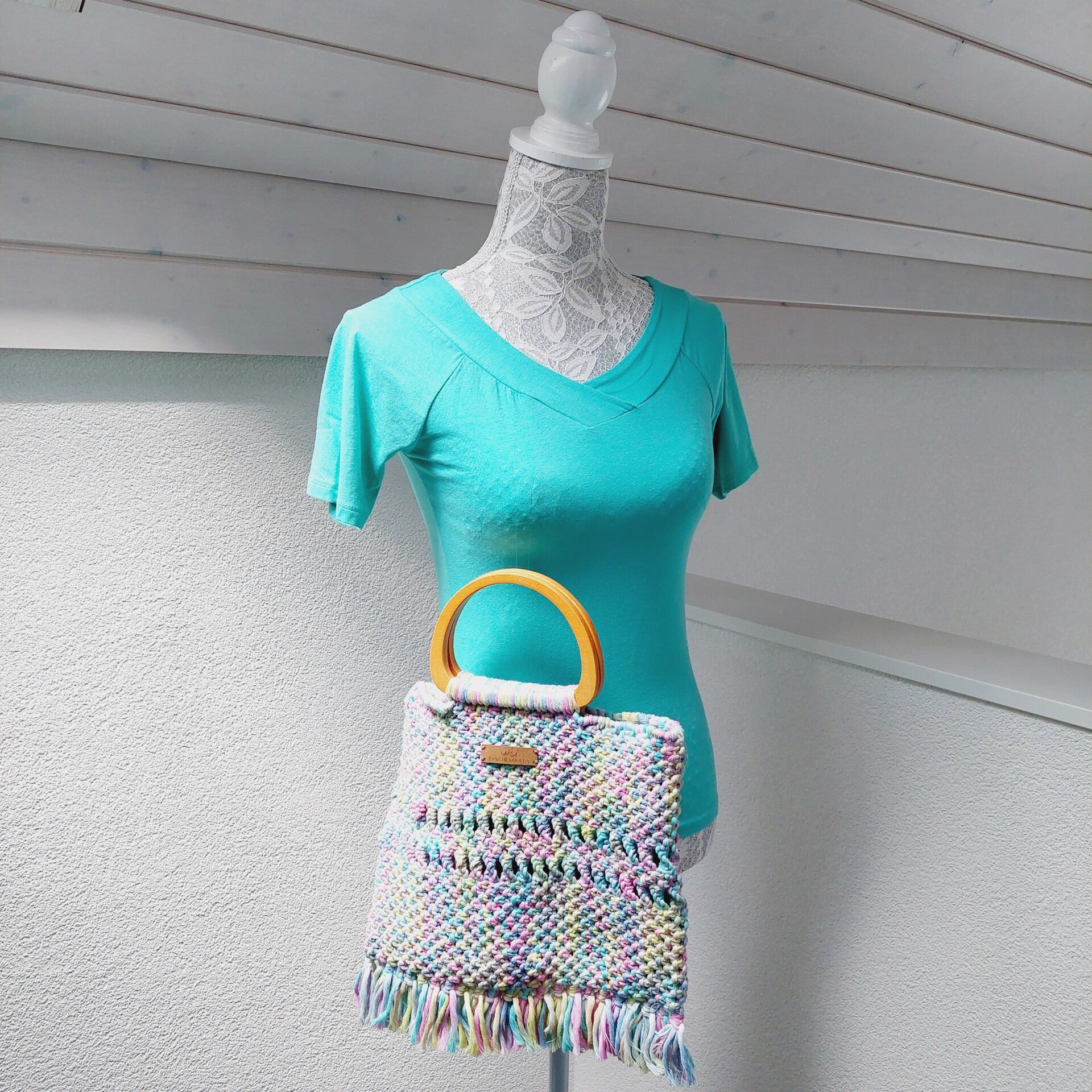 Die Tasche ist geknüpft und handgemacht. Kleine Abweichungen zu den Fotos in Form und Farbe sind deshalb möglich.