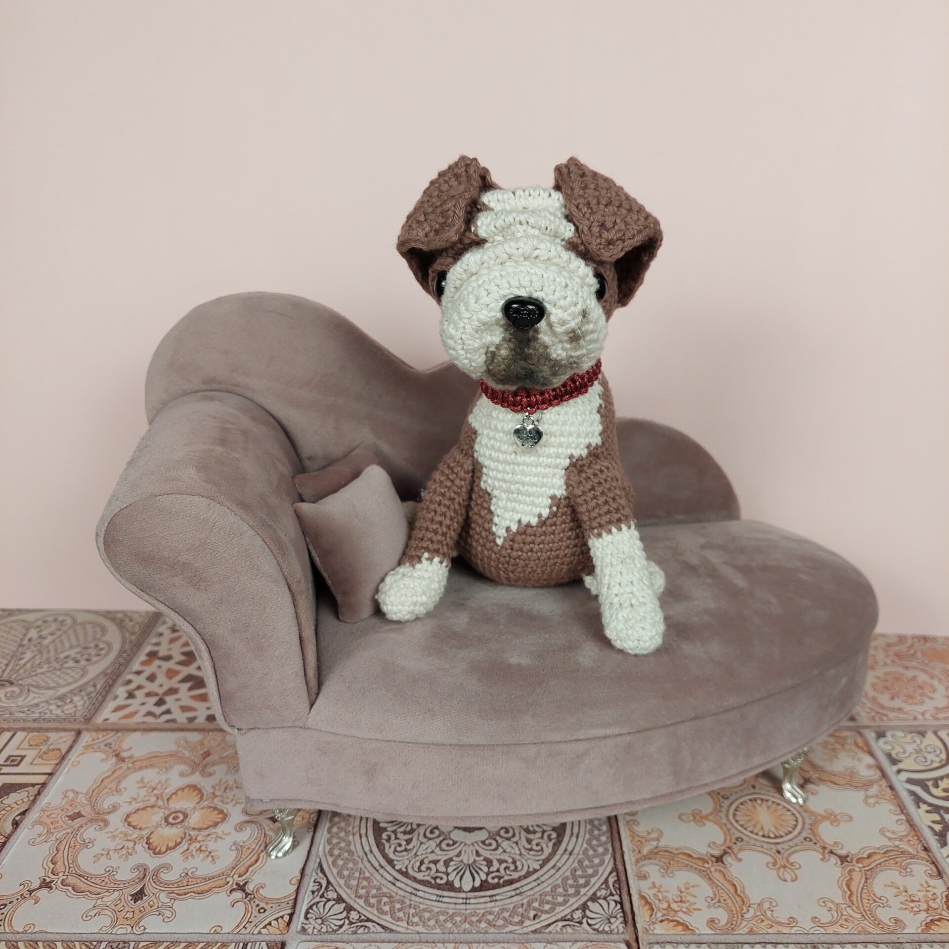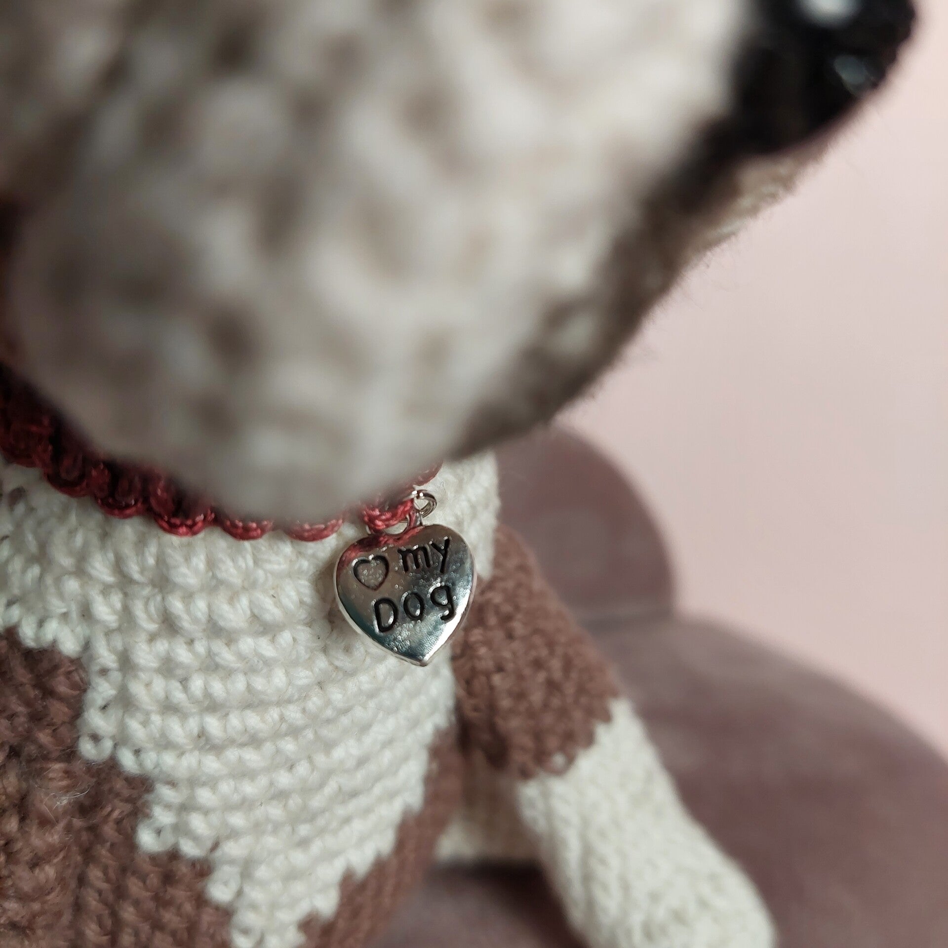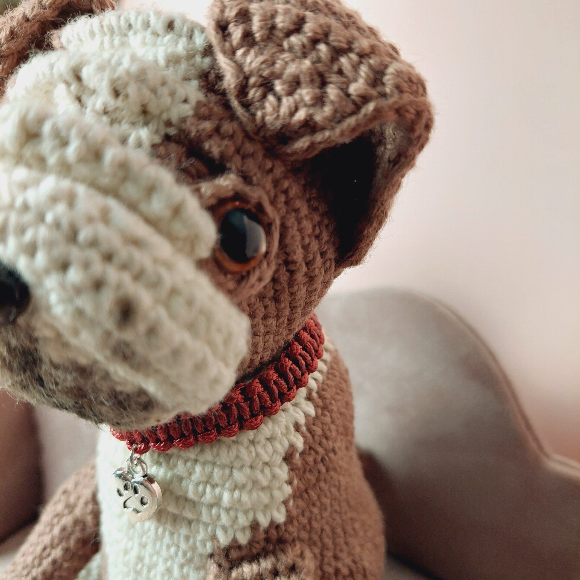 Der Bulldogge ist nach einer Anleitung von Hugles gehäkelt und handgemacht. Kleine Abweichungen zu den Fotos in Form und Farbe sind deshalb möglich.