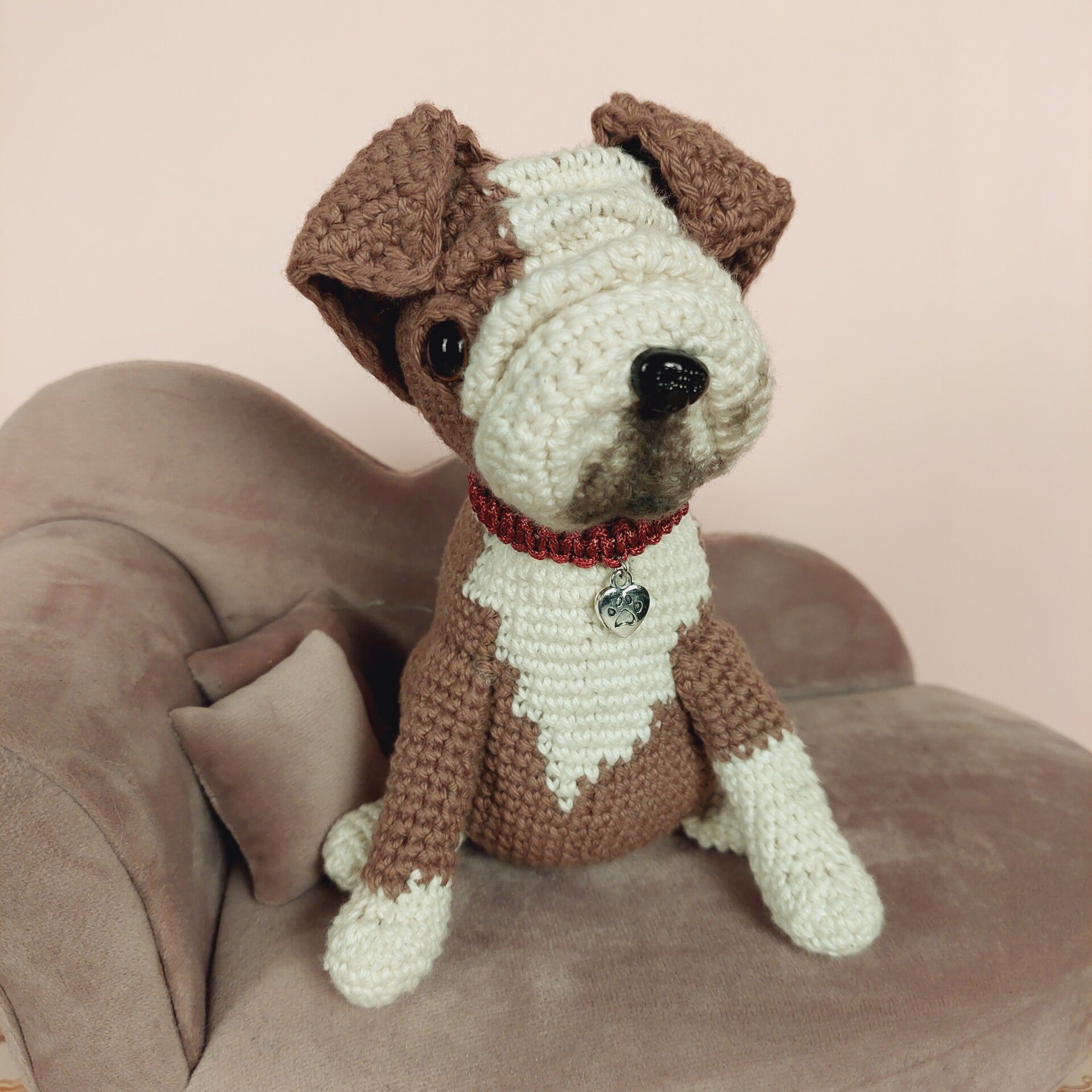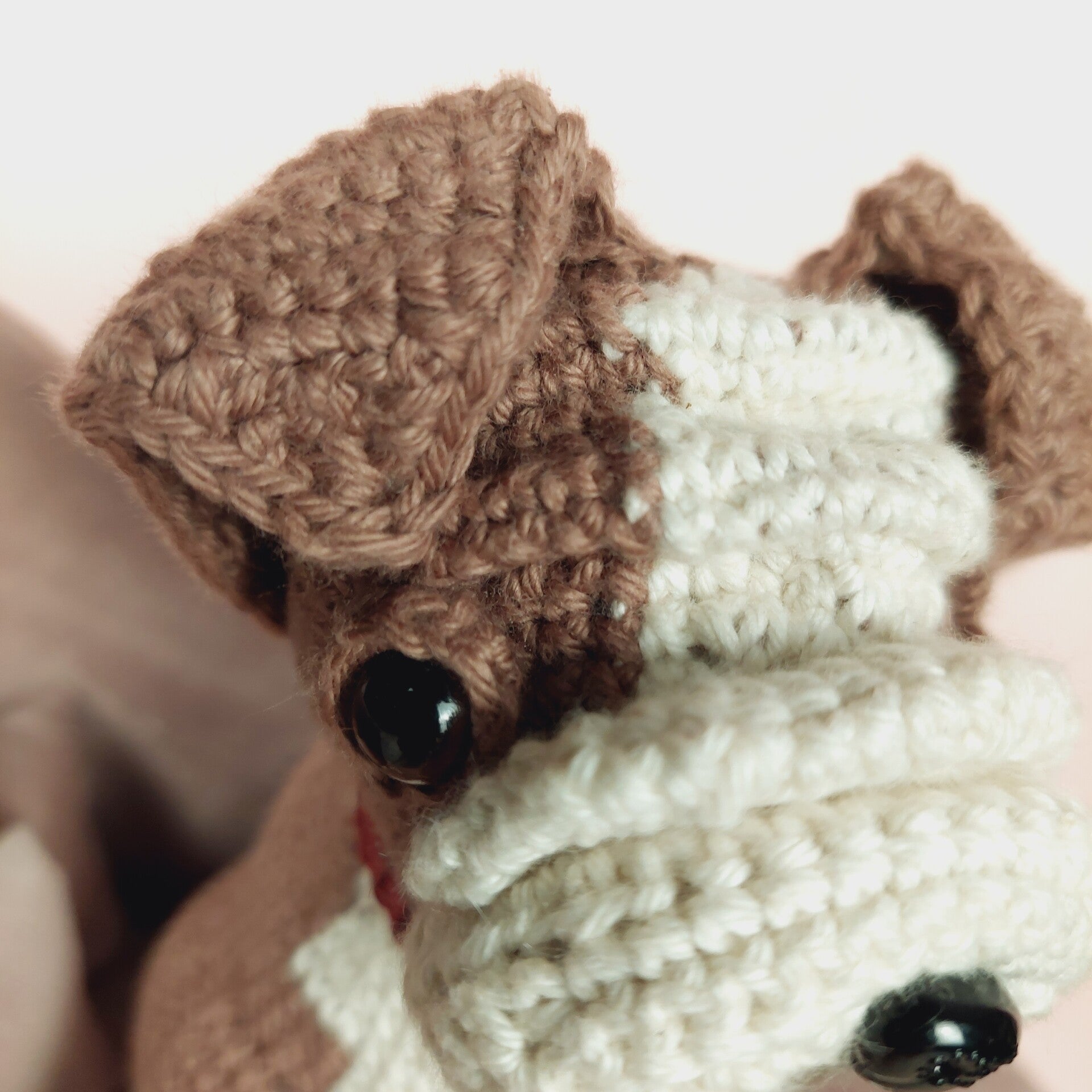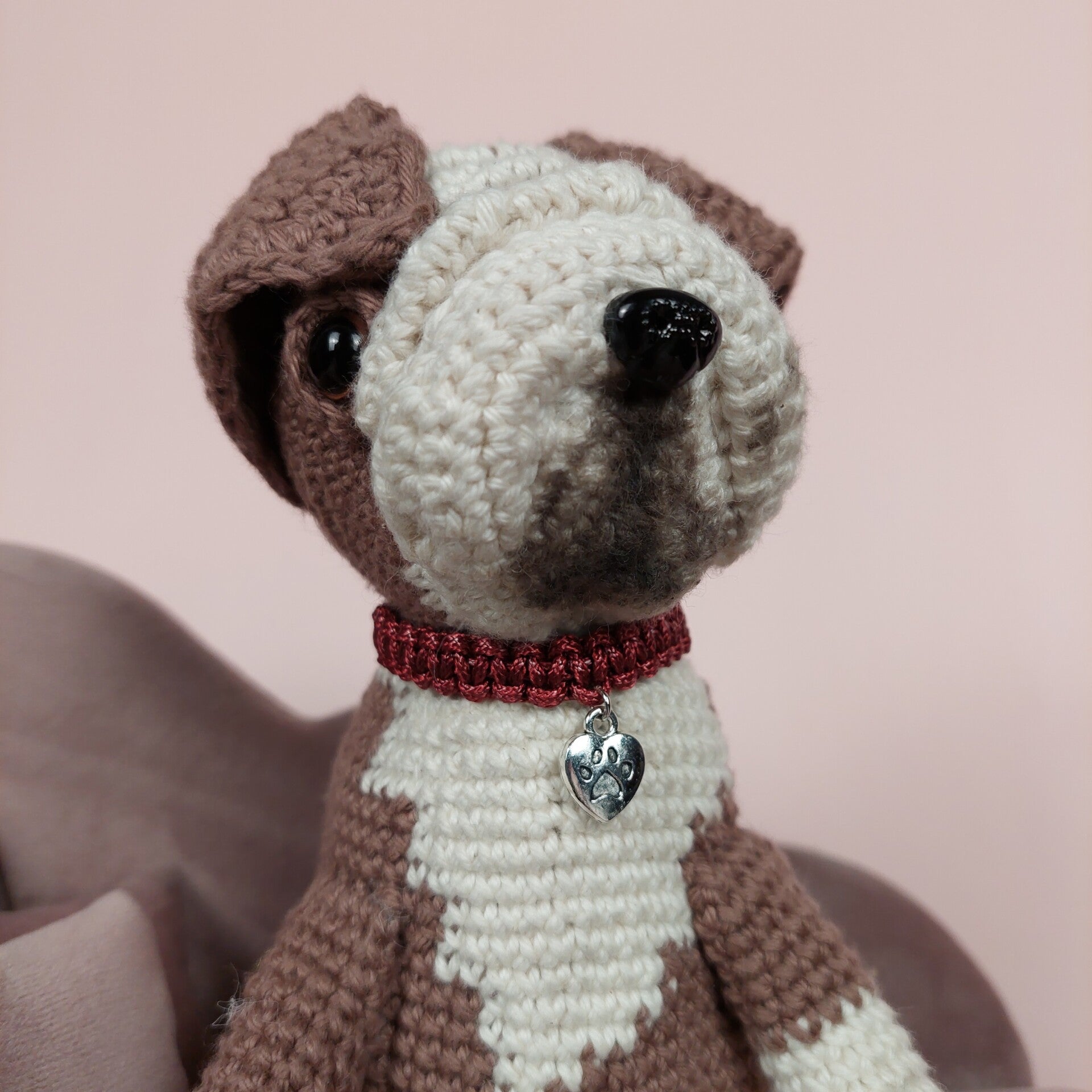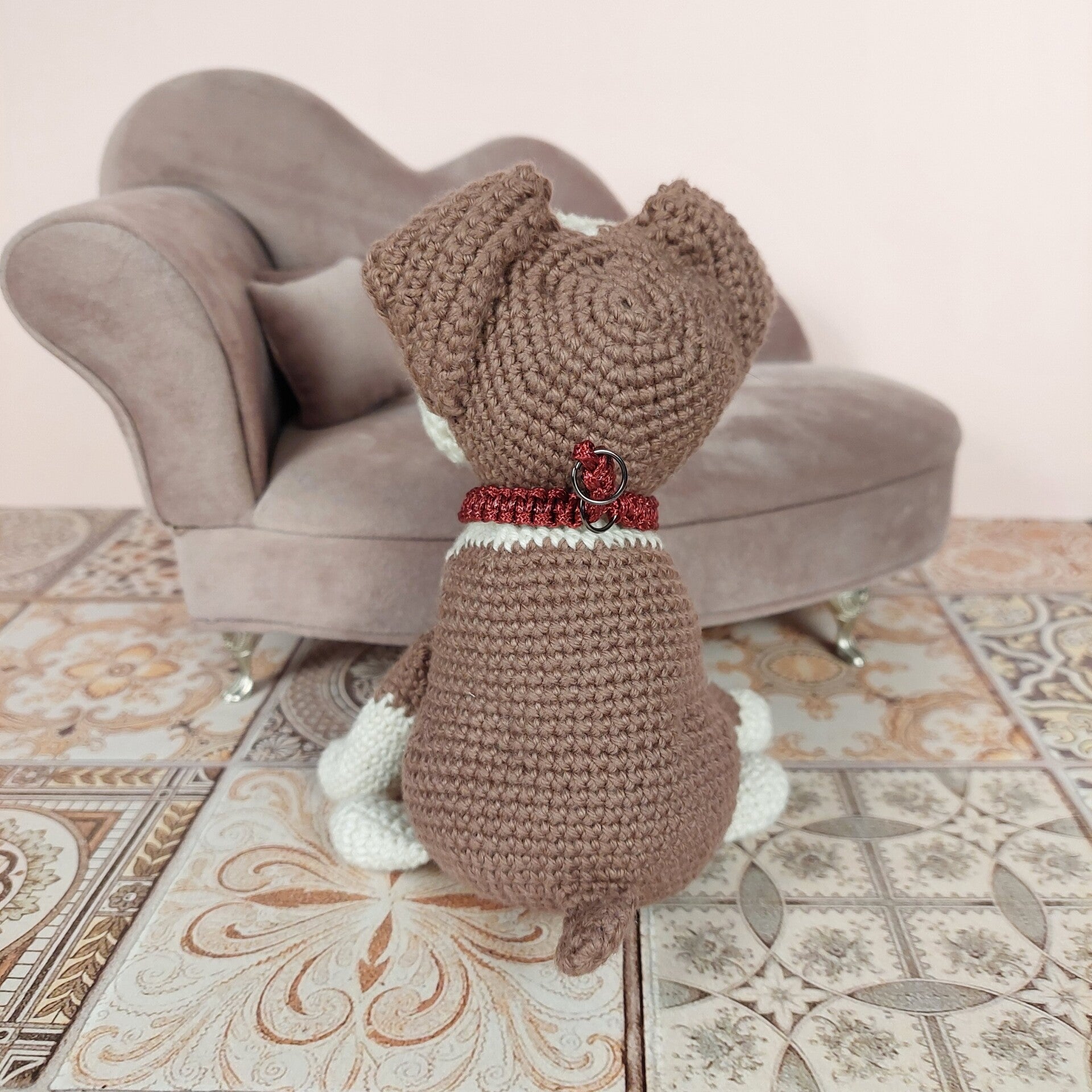 Der Bulldogge ist nach einer Anleitung von Hugles gehäkelt und handgemacht. Kleine Abweichungen zu den Fotos in Form und Farbe sind deshalb möglich.