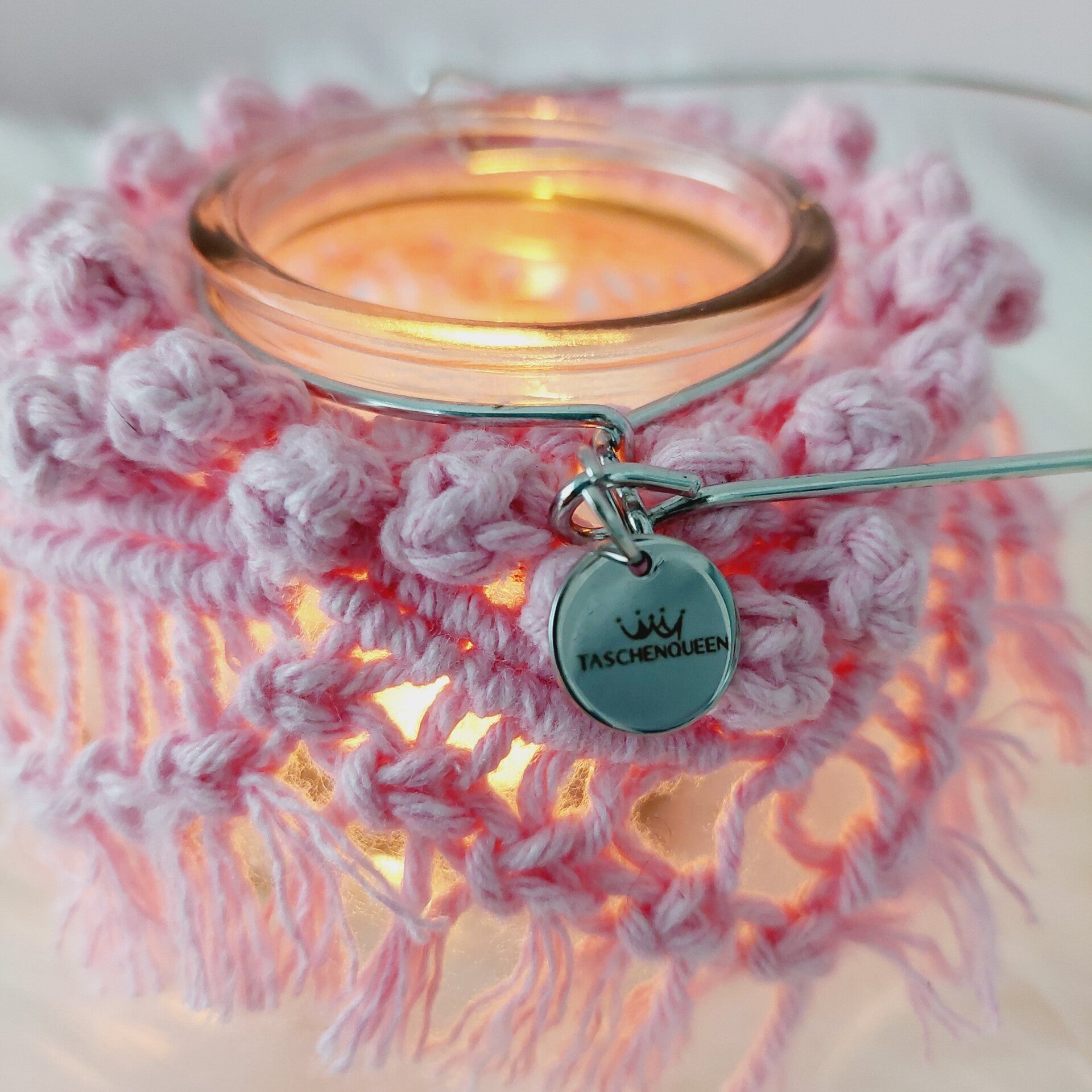 - Material: Glas mit Metallbügel und Recycling-Garn