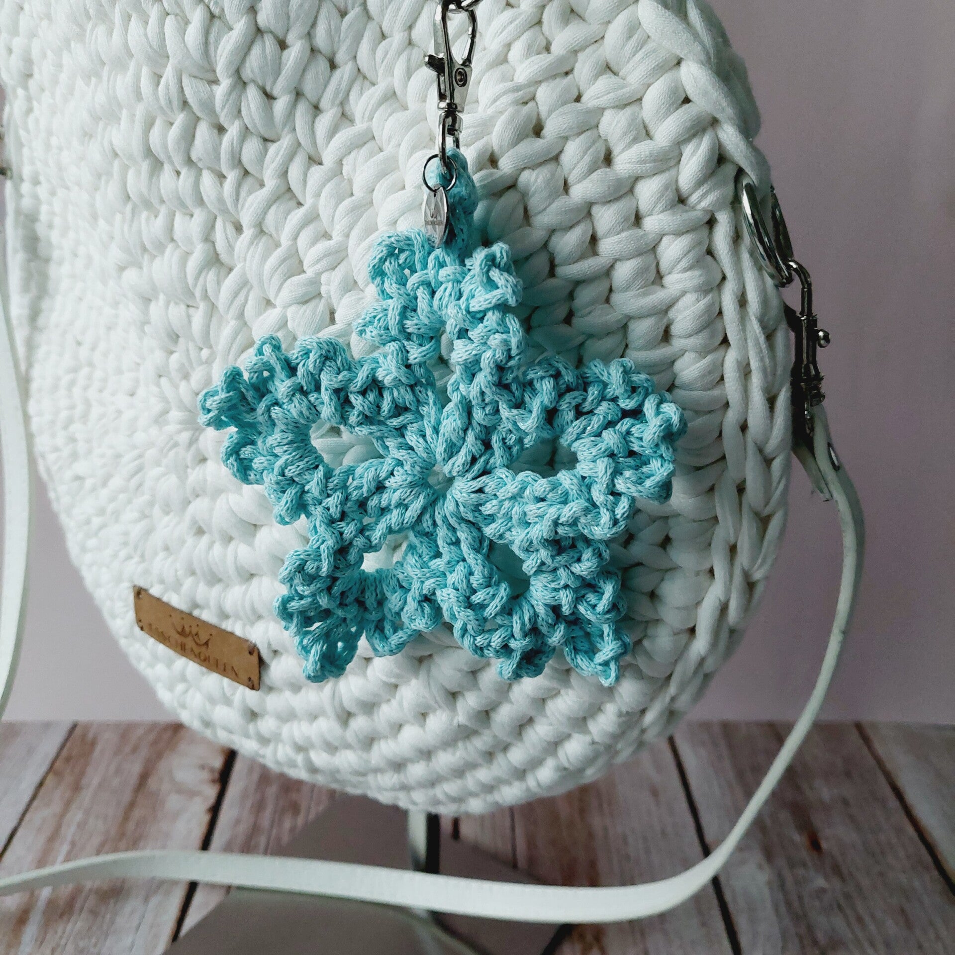 Der Taschencharm ist gehäkelt und handgemacht. Kleine Abweichungen zu den Fotos in Form und Farbe sind deshalb möglich.