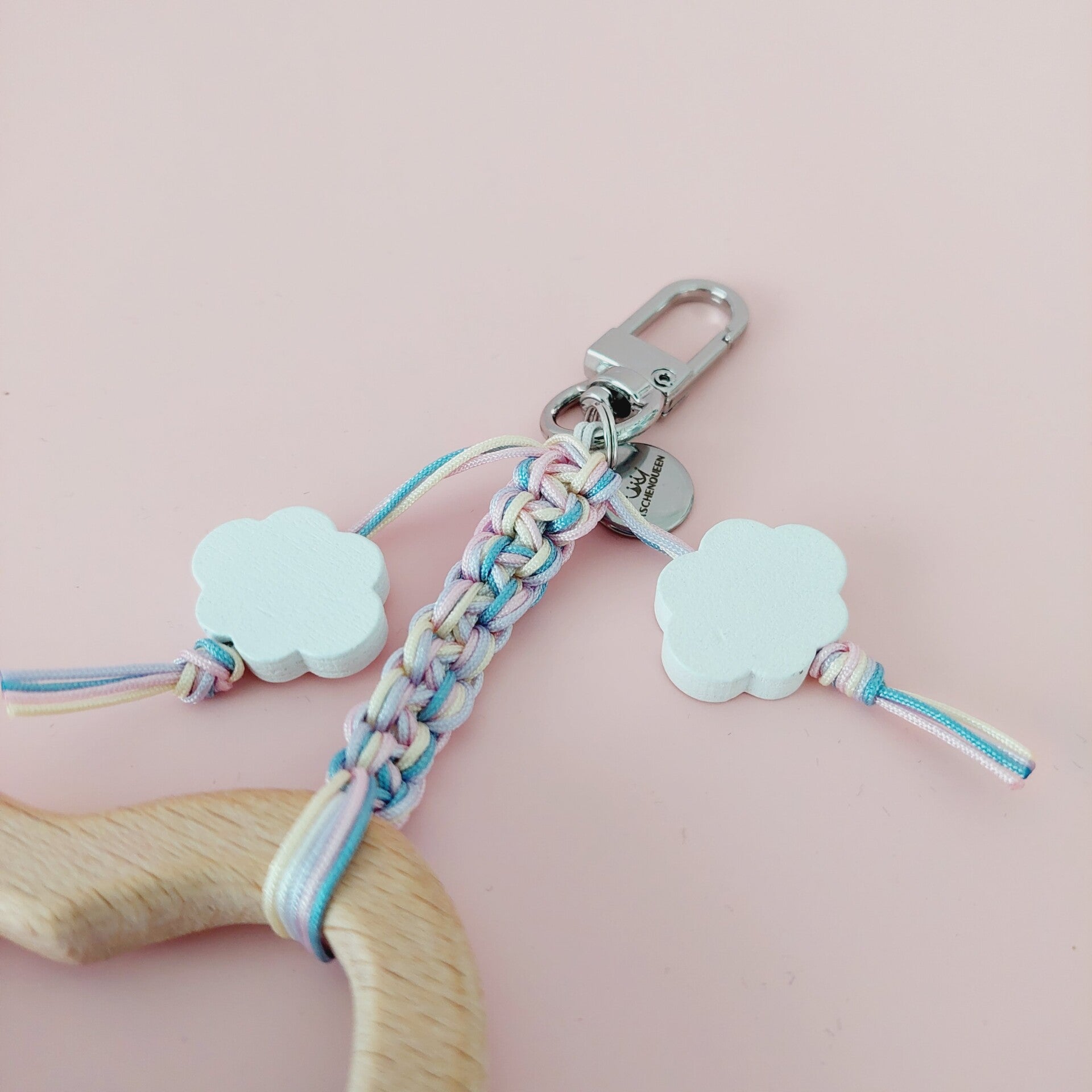 - Material: Holz (Wolken), Textilgarn aus 90% Baumwolle und 10% Mischfasern (Regenbogenstrahlen), Nylongarn (Befestigung)