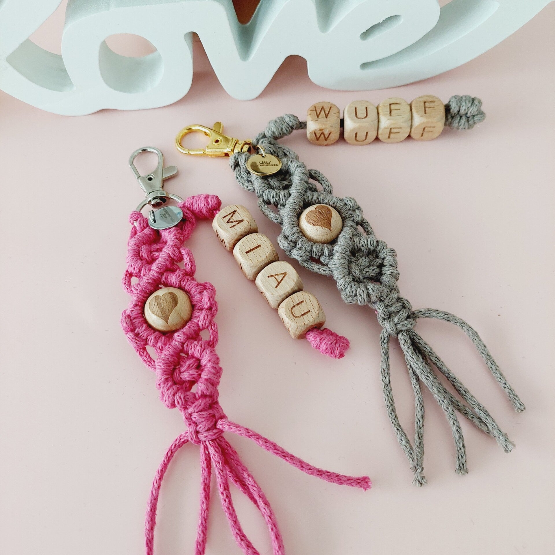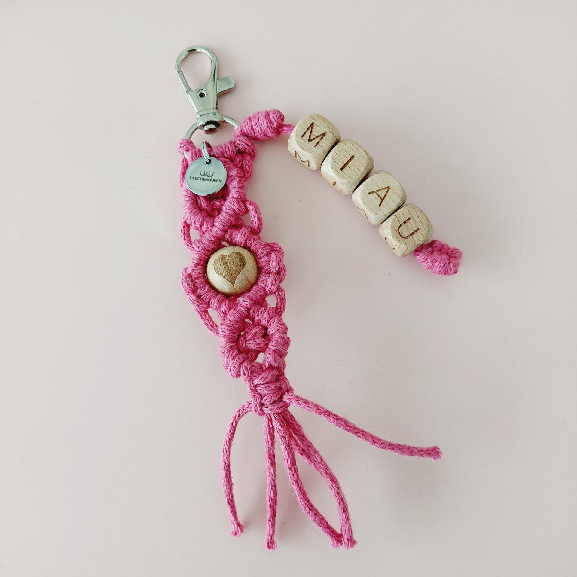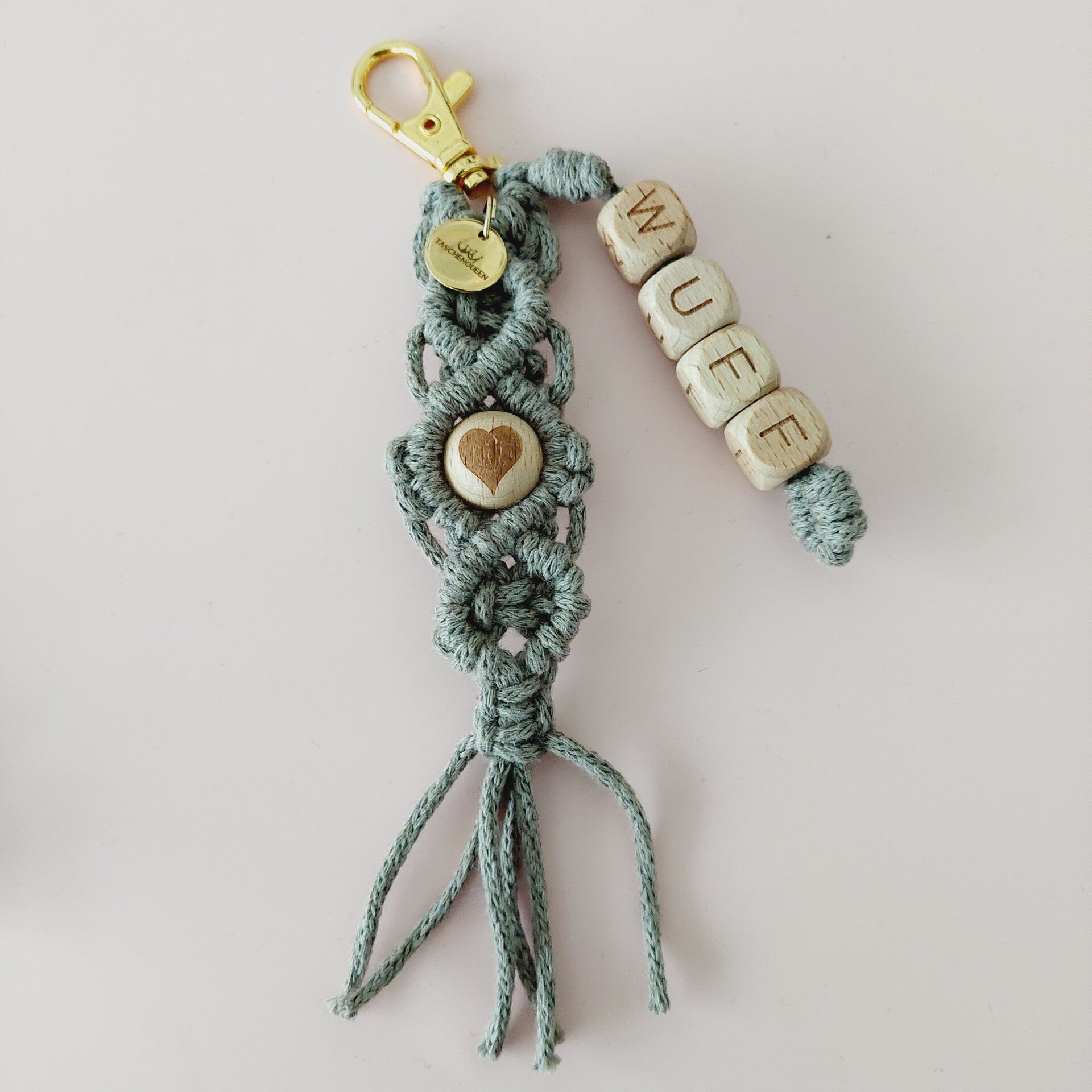 Der Taschencharm / Schlüsselanhänger ist geknüpft und handgemacht. Kleine Abweichungen zu den Fotos in Form und Farbe sind deshalb möglich.