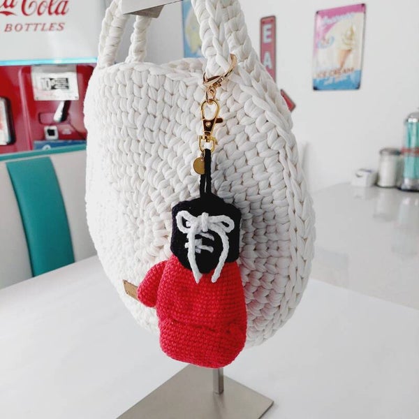 Der Taschen-Charm ist gehäkelt und handgemacht. Kleine Abweichungen zu den Fotos in Form und Farbe sind deshalb möglich.