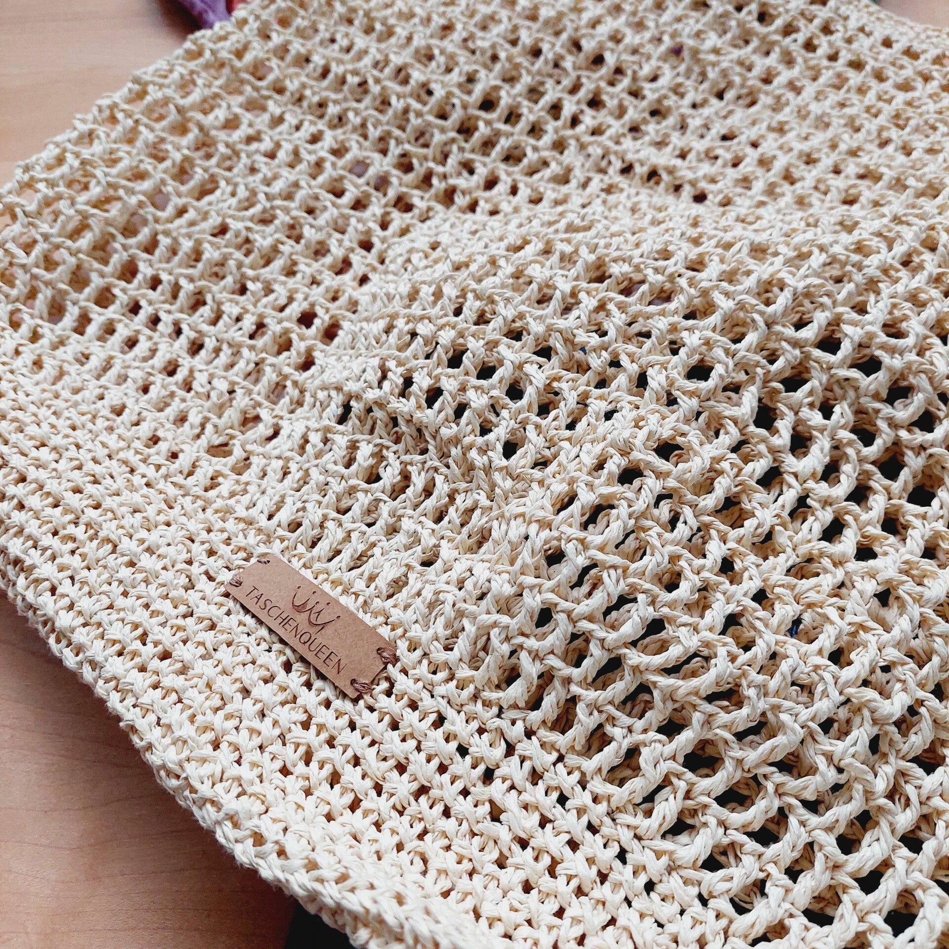 Die Tasche ist gehäkelt und handgemacht. Kleine Abweichungen zu den Fotos in Form und Farbe sind deshalb möglich.