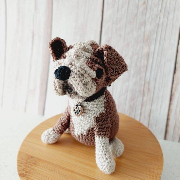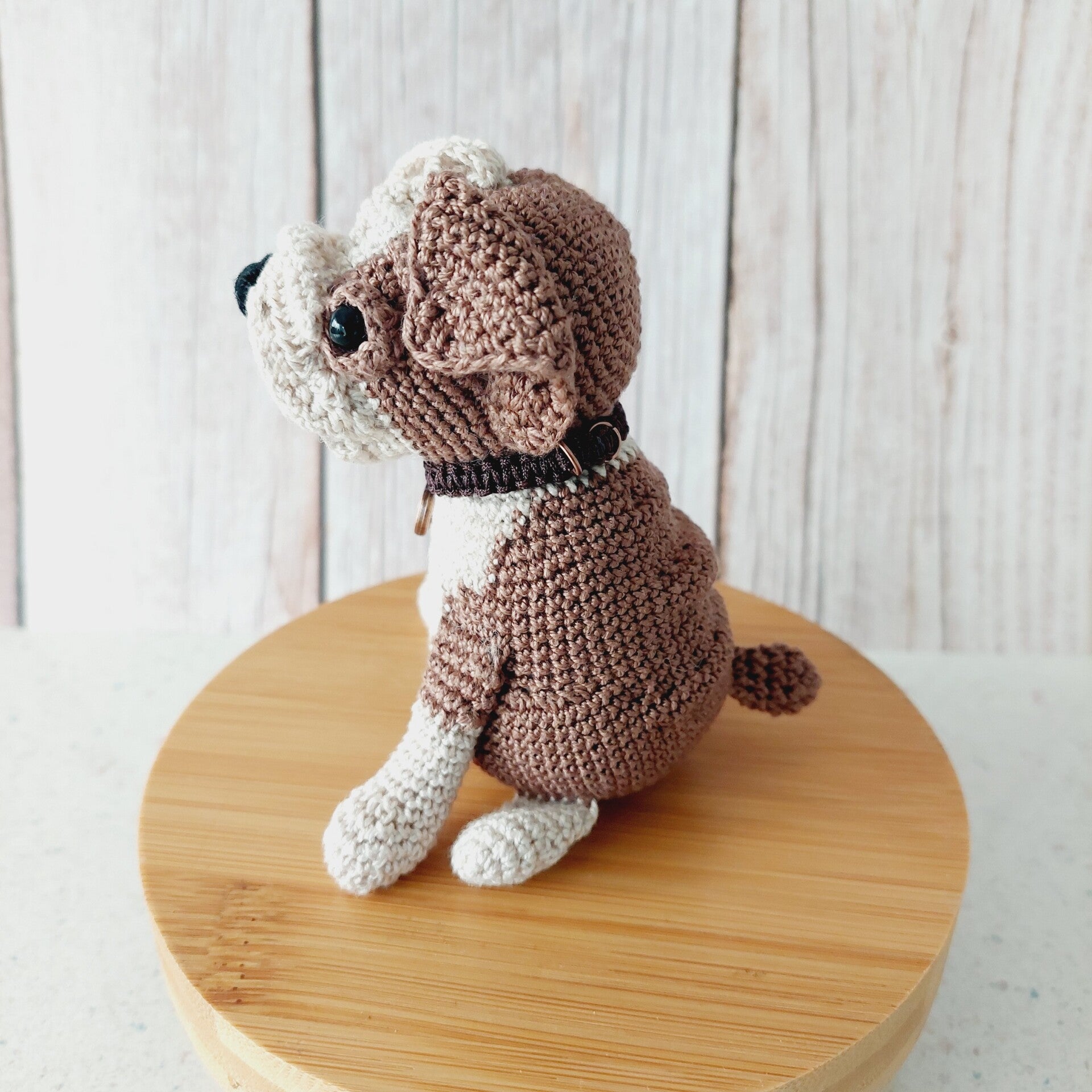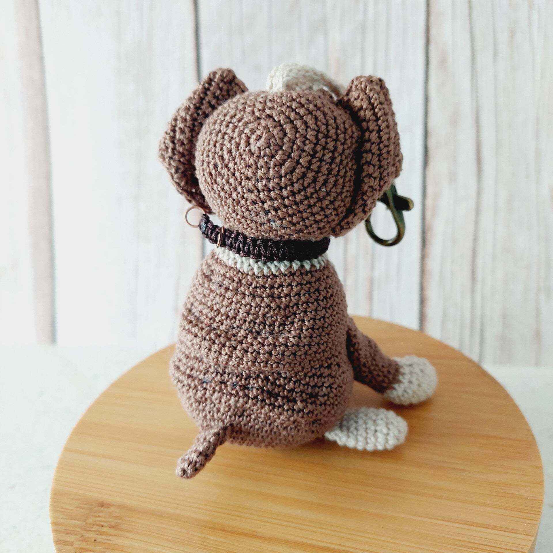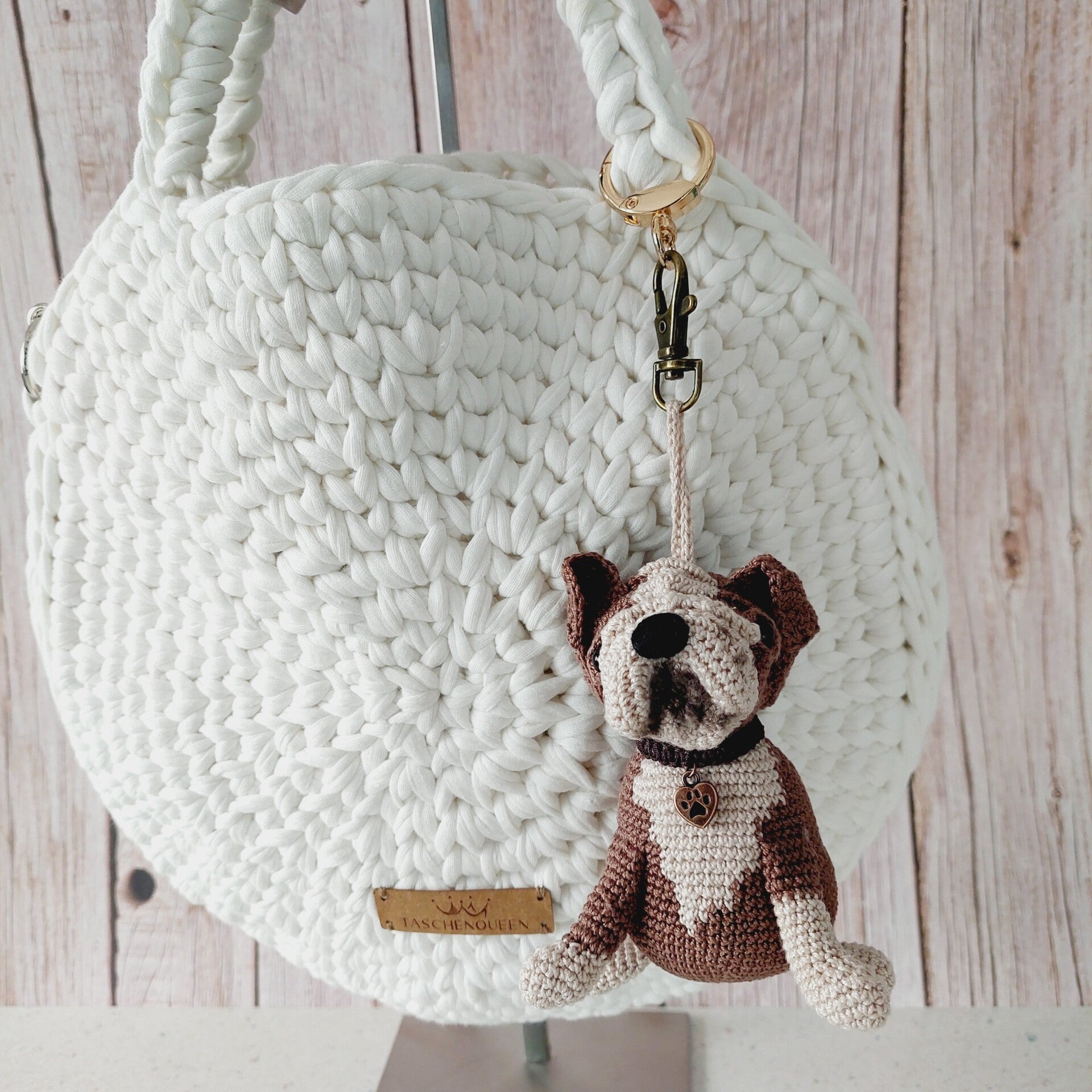 Der Bulldogge ist nach einer Anleitung von Hugles gehäkelt und handgemacht. Kleine Abweichungen zu den Fotos in Form und Farbe sind deshalb möglich.