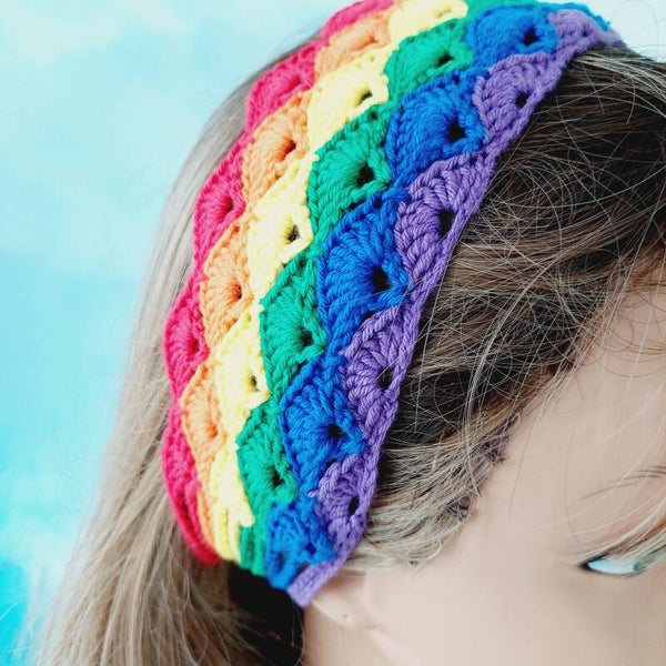 Das Haarband ist nach einer Vorlage von DevineDebris.com gehäkelt und handgemacht. Kleine Abweichungen zu den Fotos in Form und Farbe sind deshalb möglich.