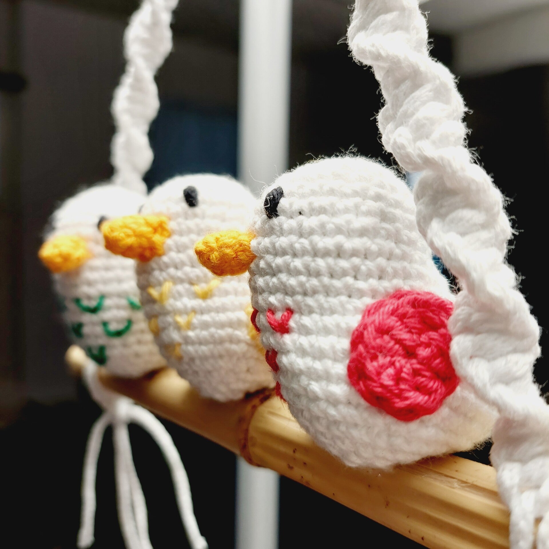 Die Vögel und die Schaukelaufhängung können auch in Wunschfarbe hergestellt werden. Bitte kontaktiere mich.