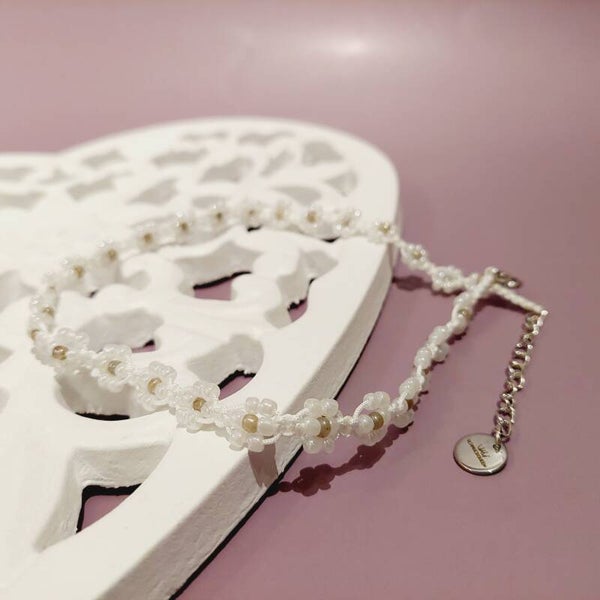 Der Choker ist geknüpft und handgemacht. Kleine Abweichungen zu den Fotos in Form, Farbe und Grösse sind deshalb möglich.