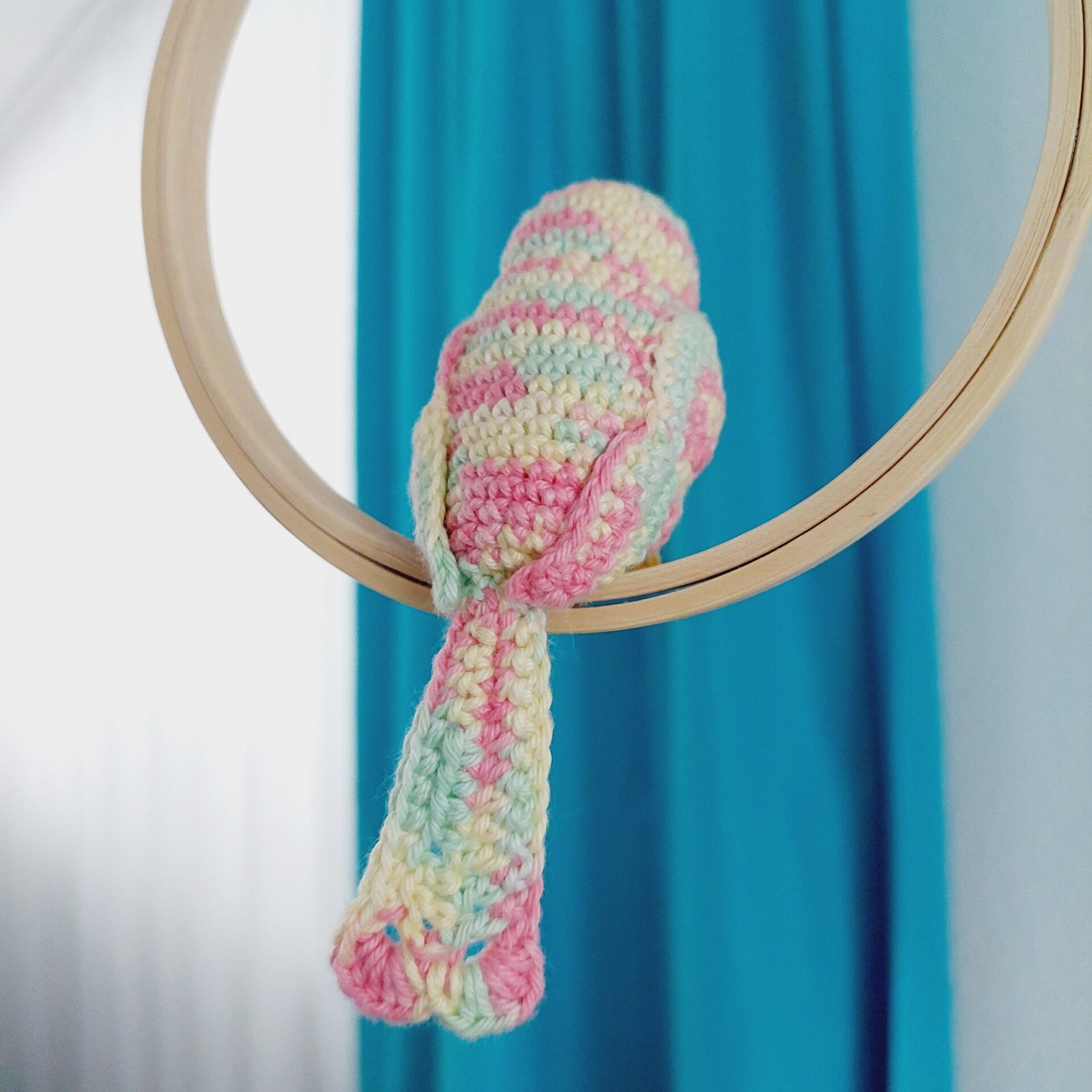- Schaukel: Stickrahmen aus Holz und Metall
