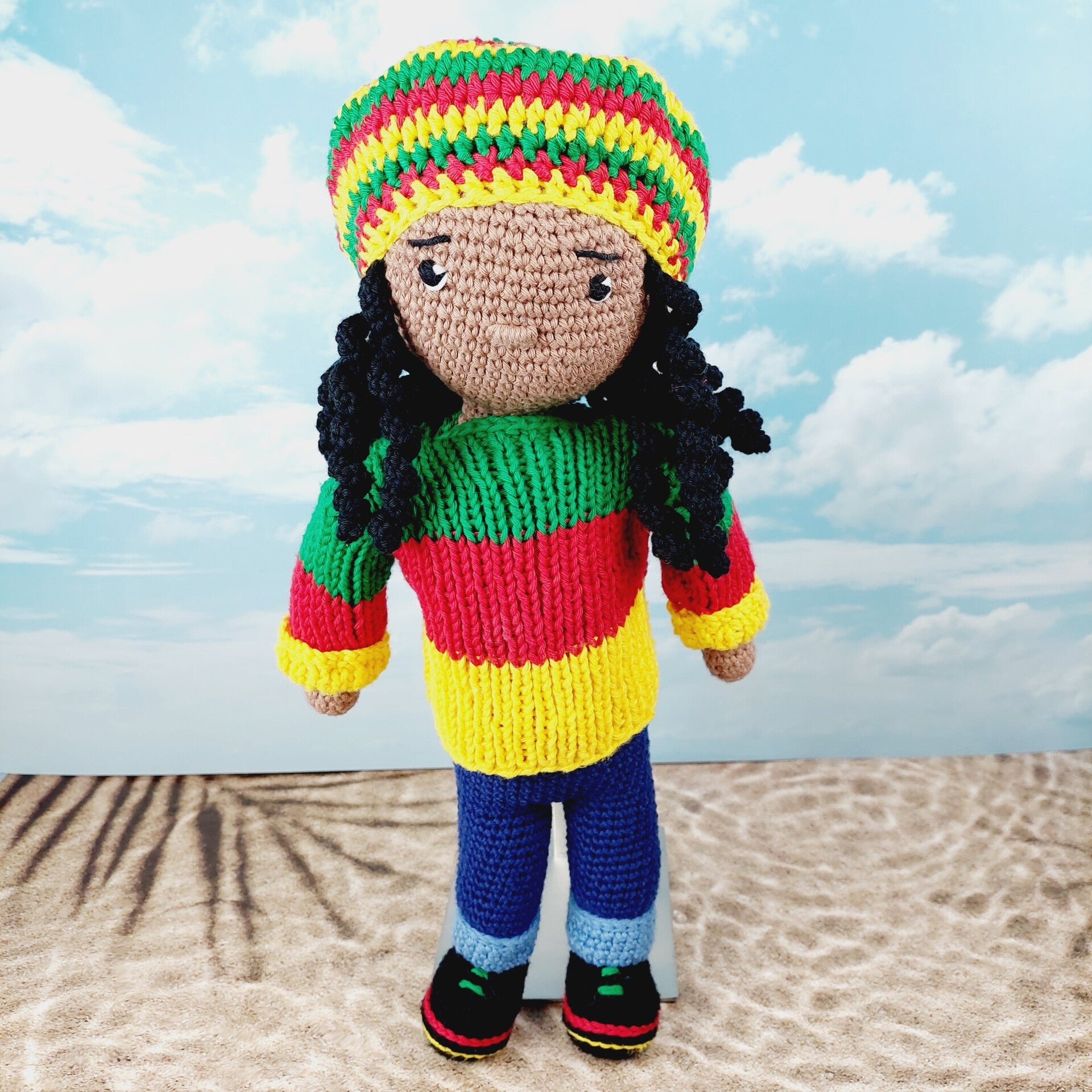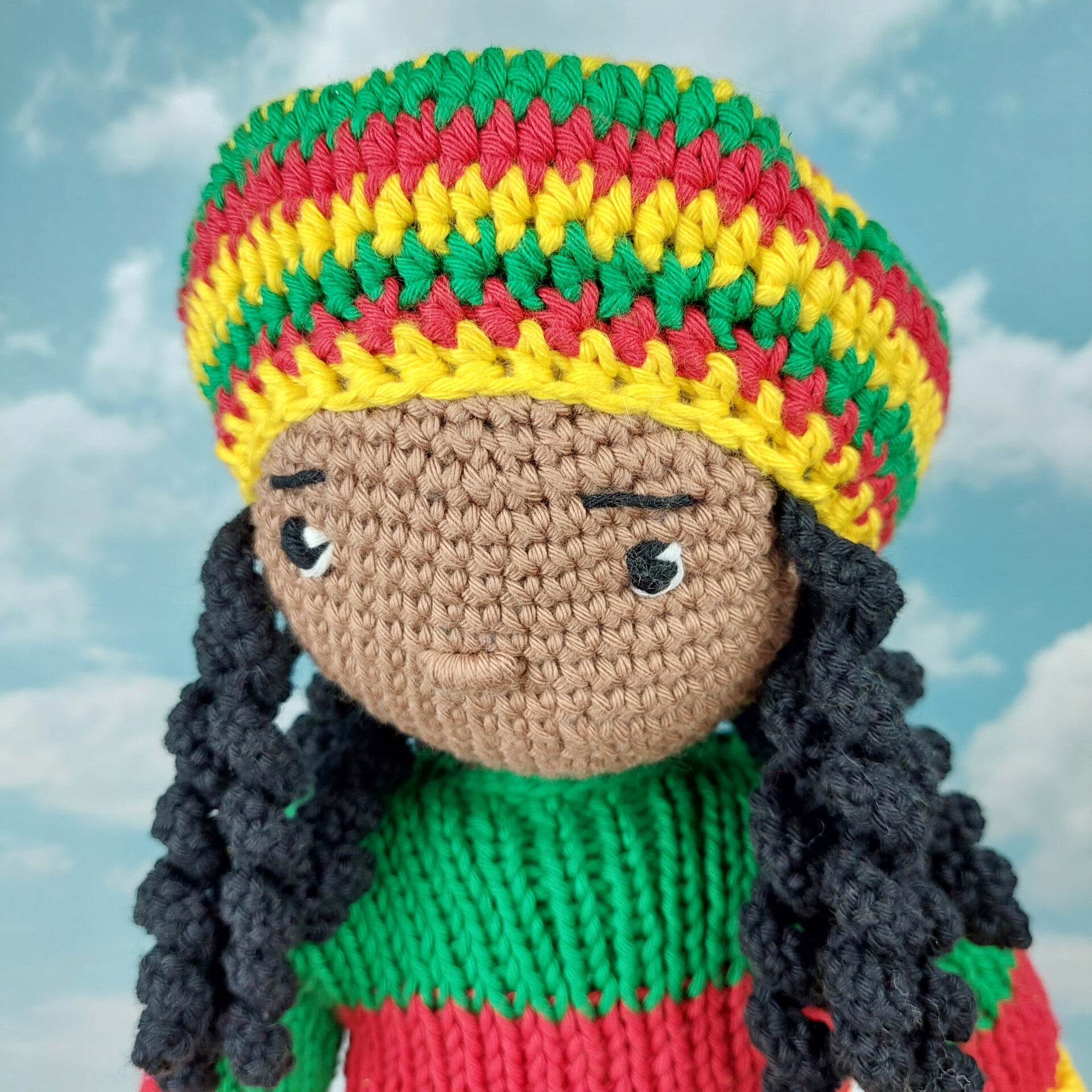 Die Puppe ist gehäkelt und handgemacht. Kleine Abweichungen zu den Fotos in Form und Farbe sind deshalb möglich.