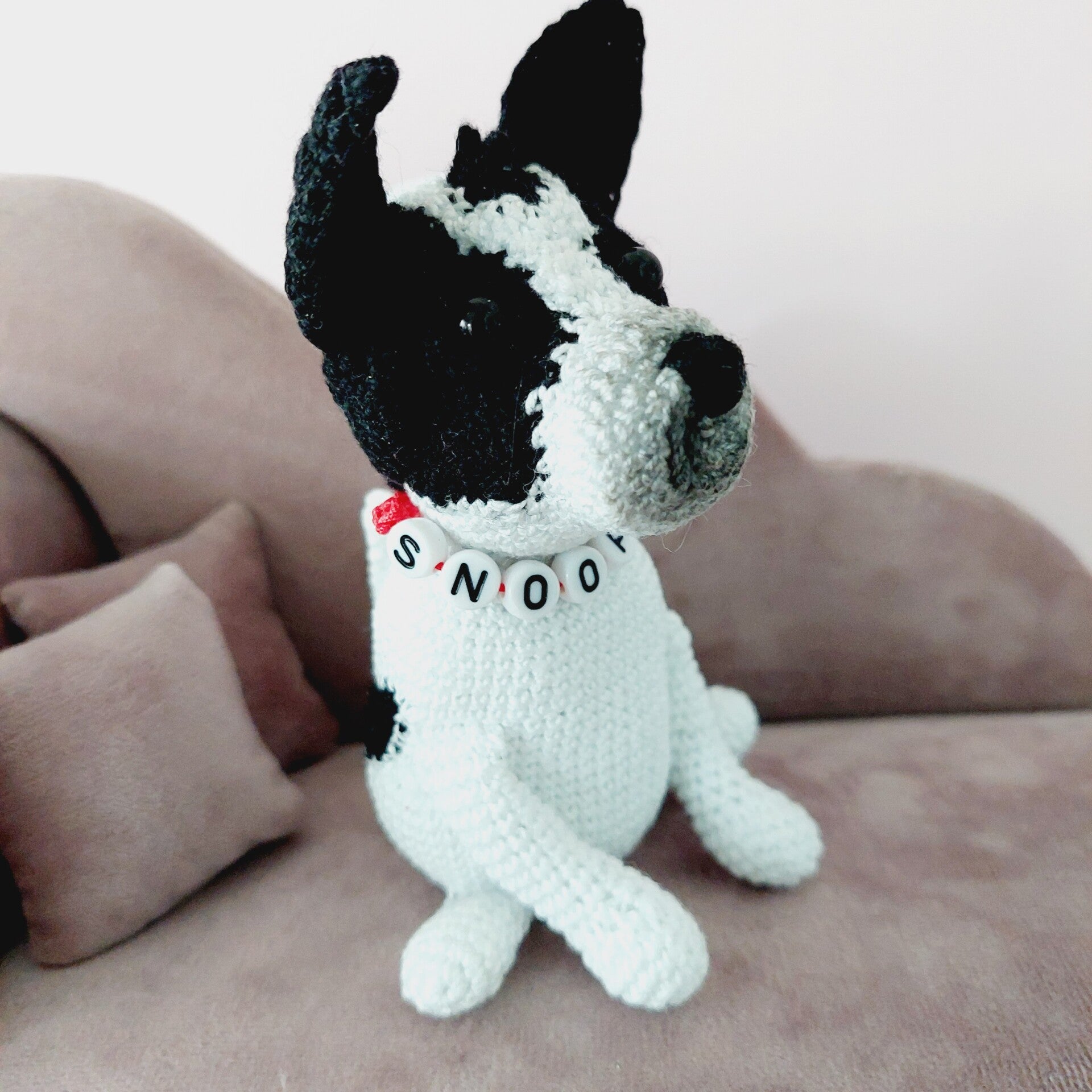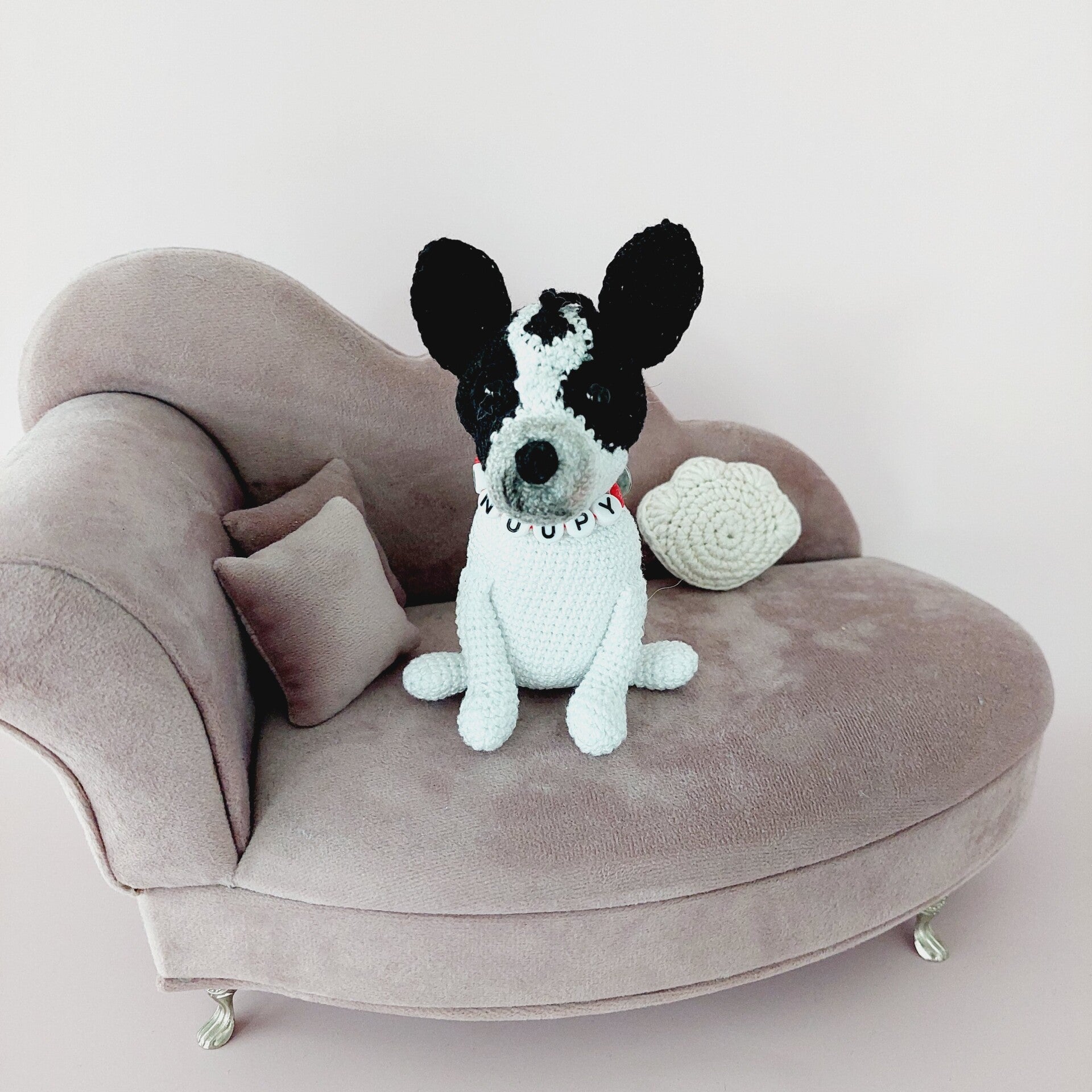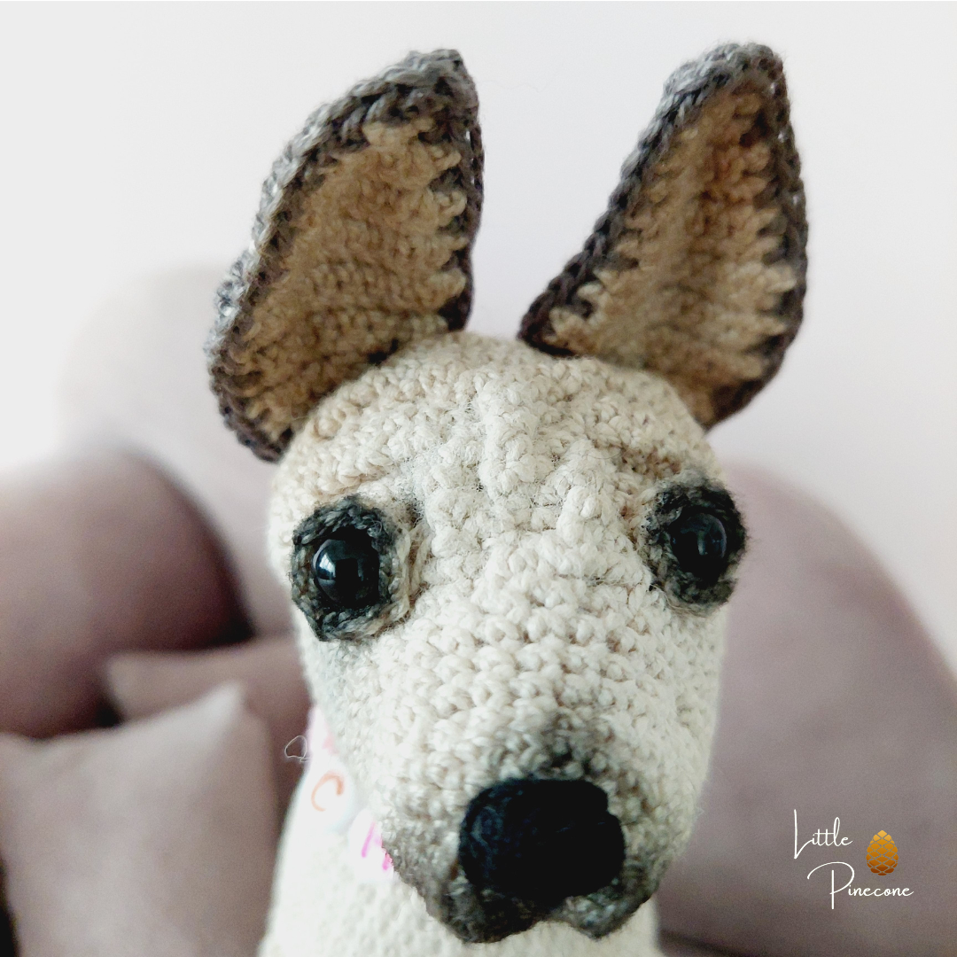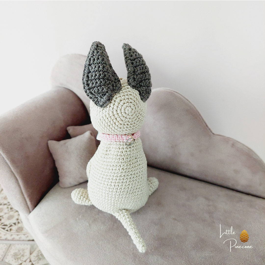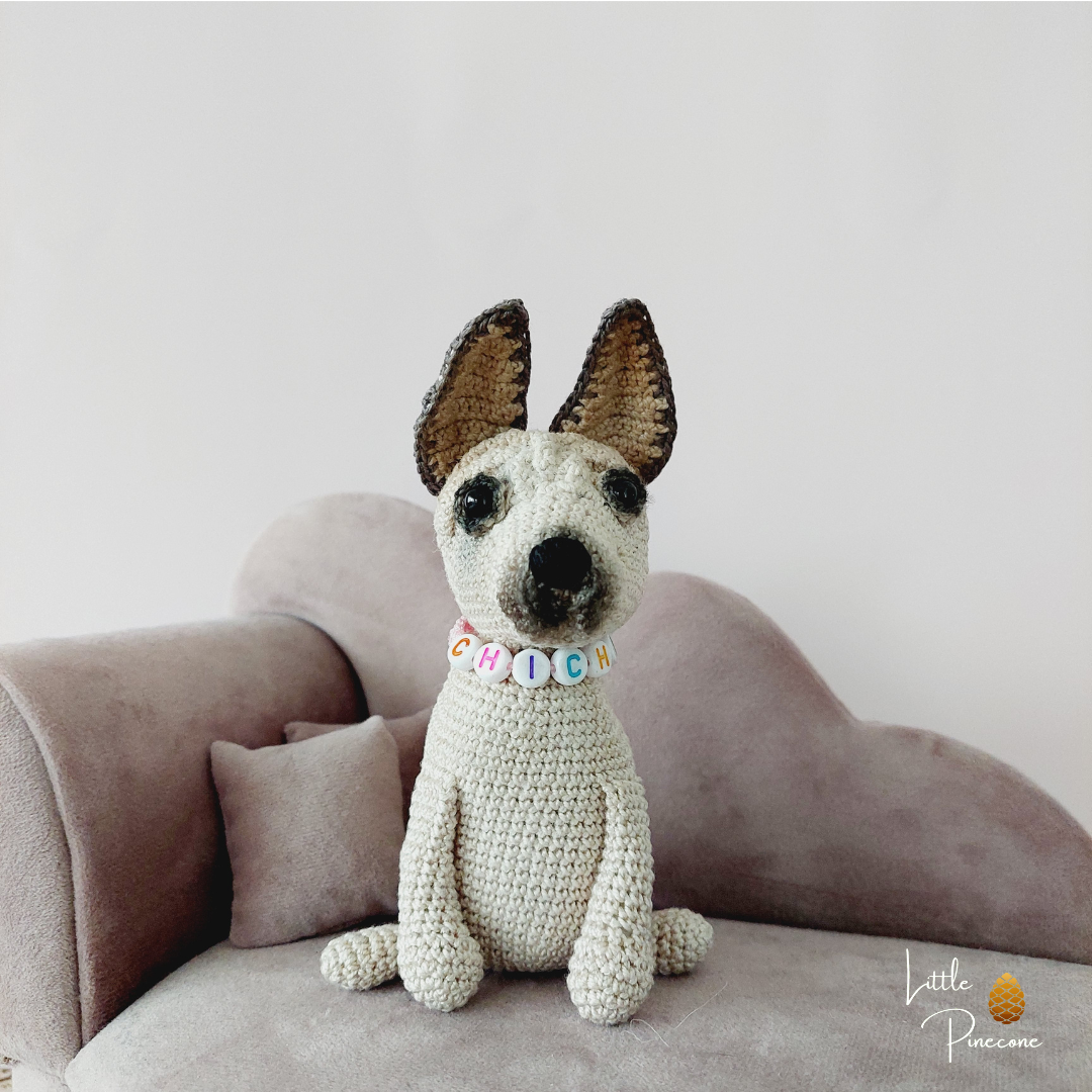 Der Chihuahua ist teilweise nach einer Anleitung von Hugles gehäkelt und handgemacht. Kleine Abweichungen zu den Fotos in Form und Farbe sind deshalb möglich.