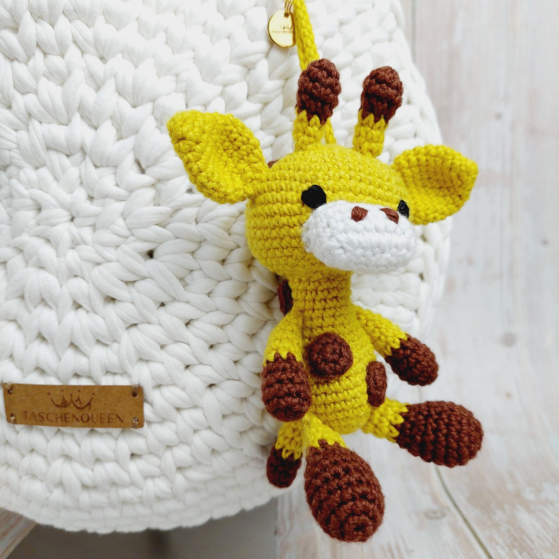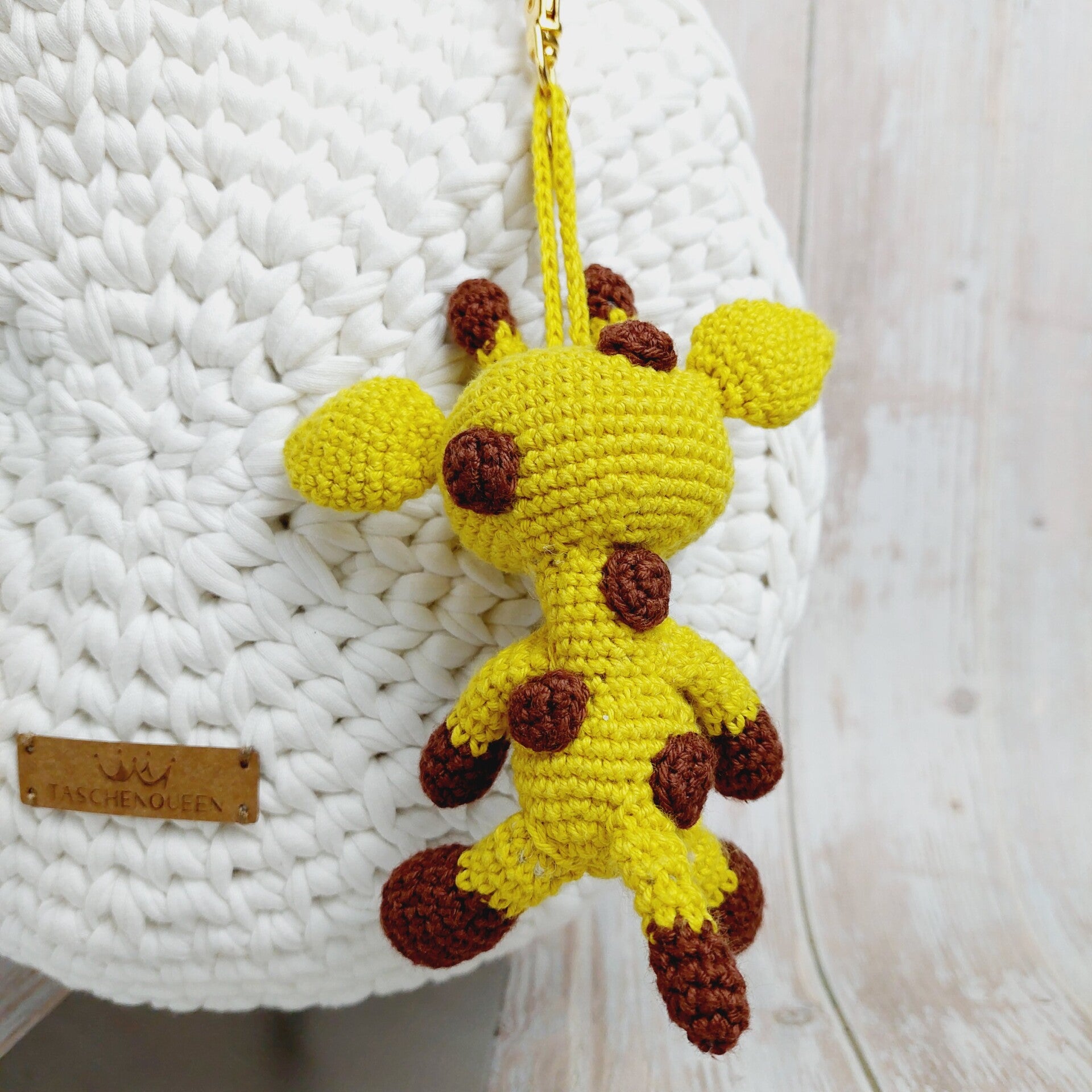 Der Taschen-Charm ist nach einer Anleitung von Hobbii Design gehäkelt und handgemacht. Kleine Abweichungen zu den Fotos in Form und Farbe sind deshalb möglich.