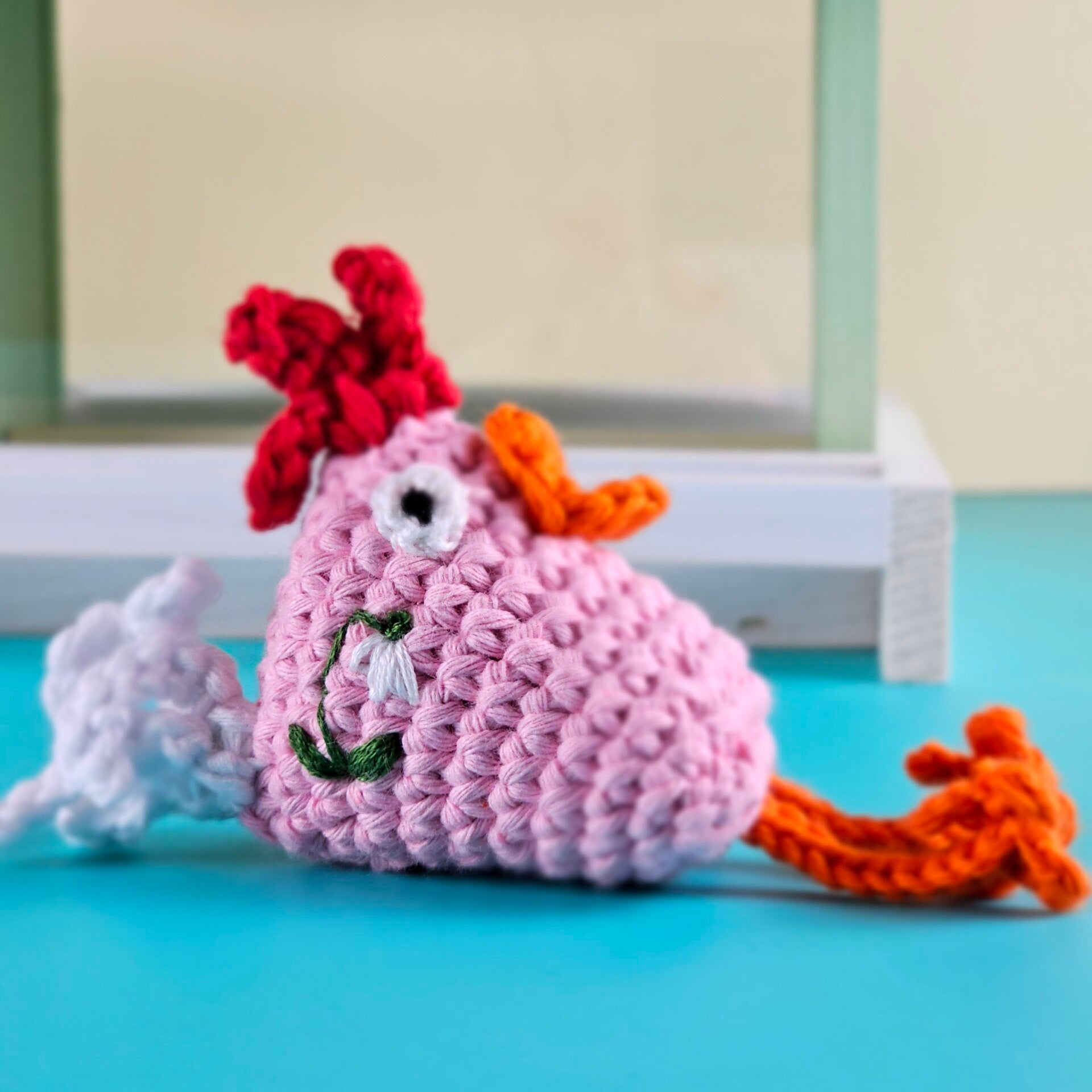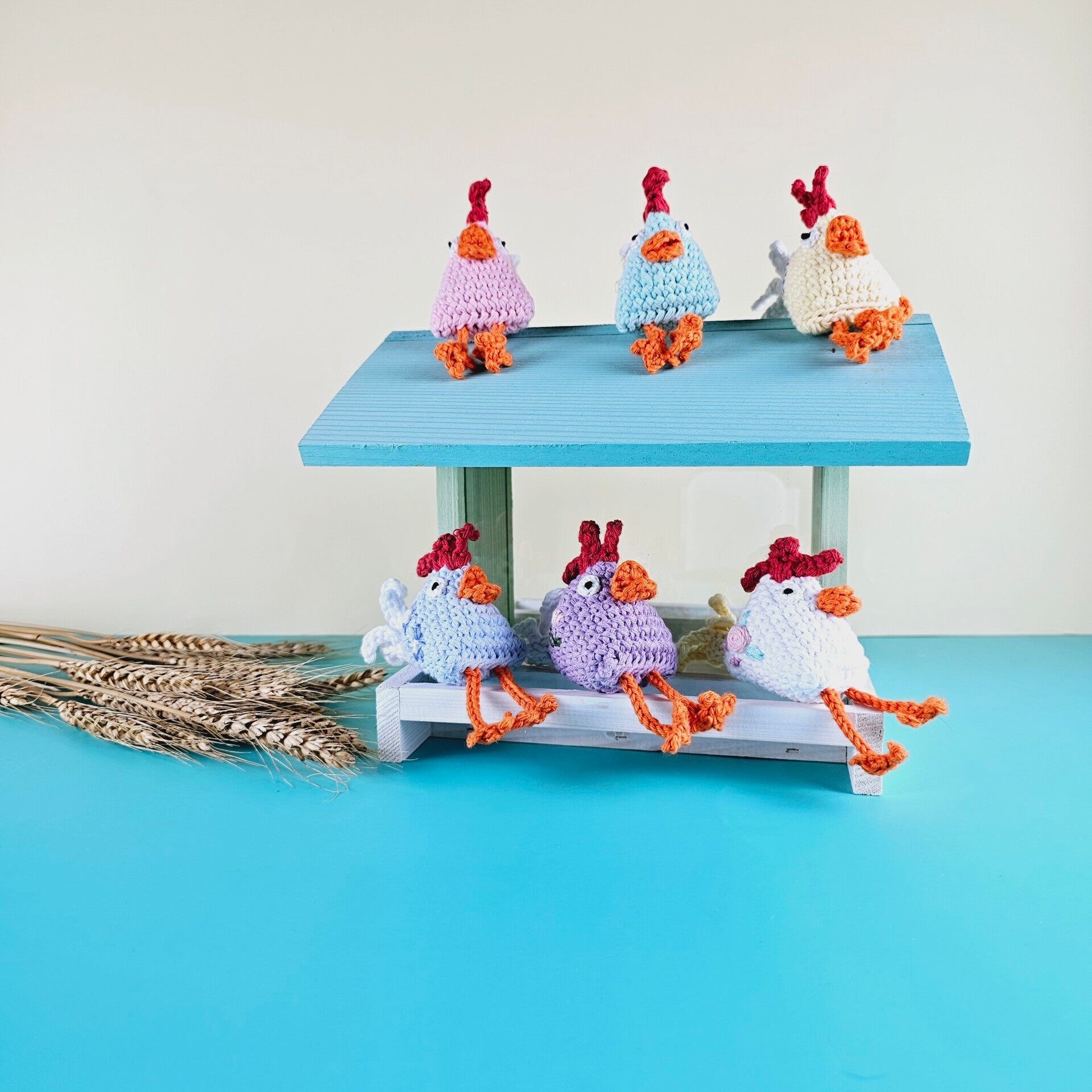 Die Hühnchen sind gehäkelt, bestickt und handgemacht. Kleine Abweichungen zu den Fotos in Form und Farbe sind deshalb möglich.