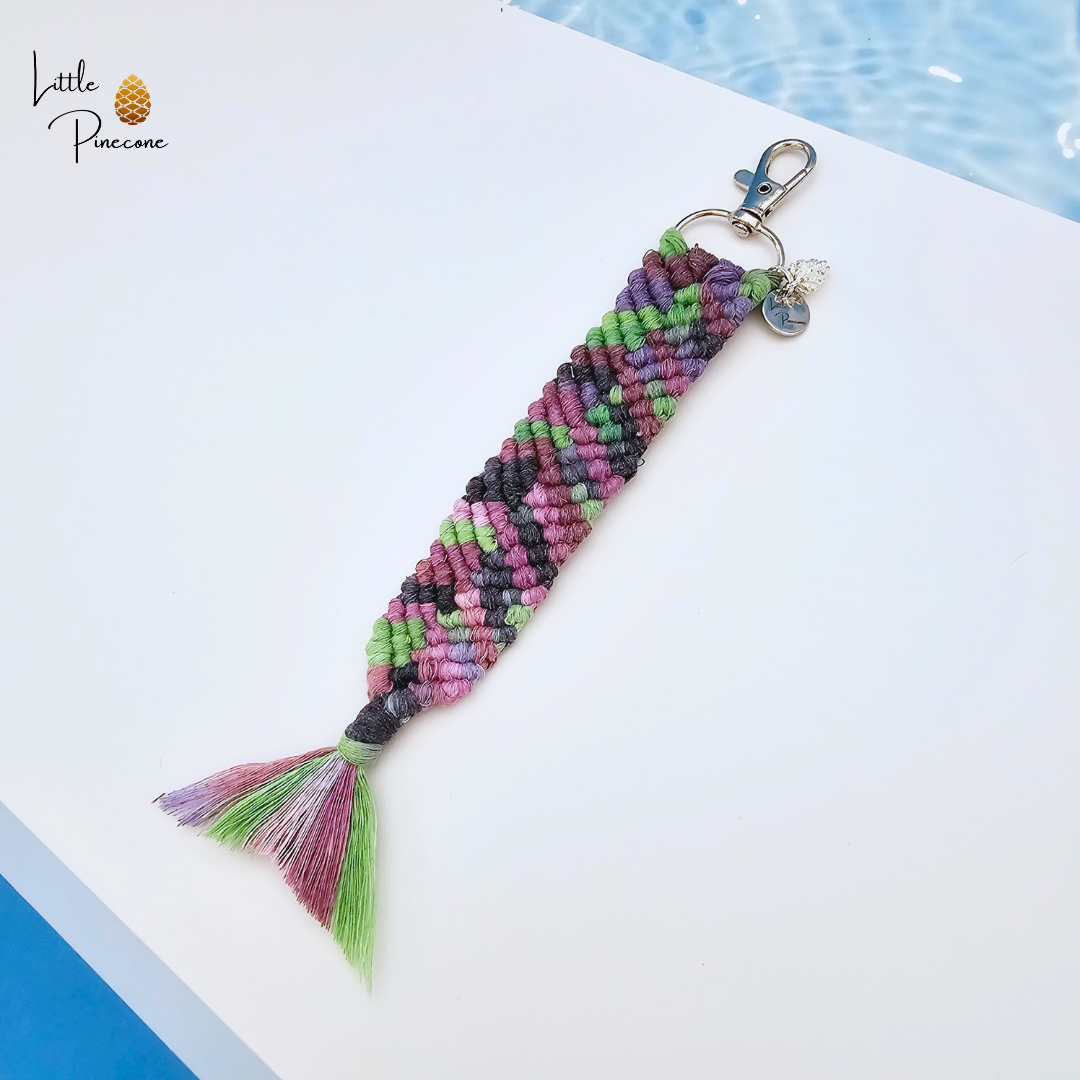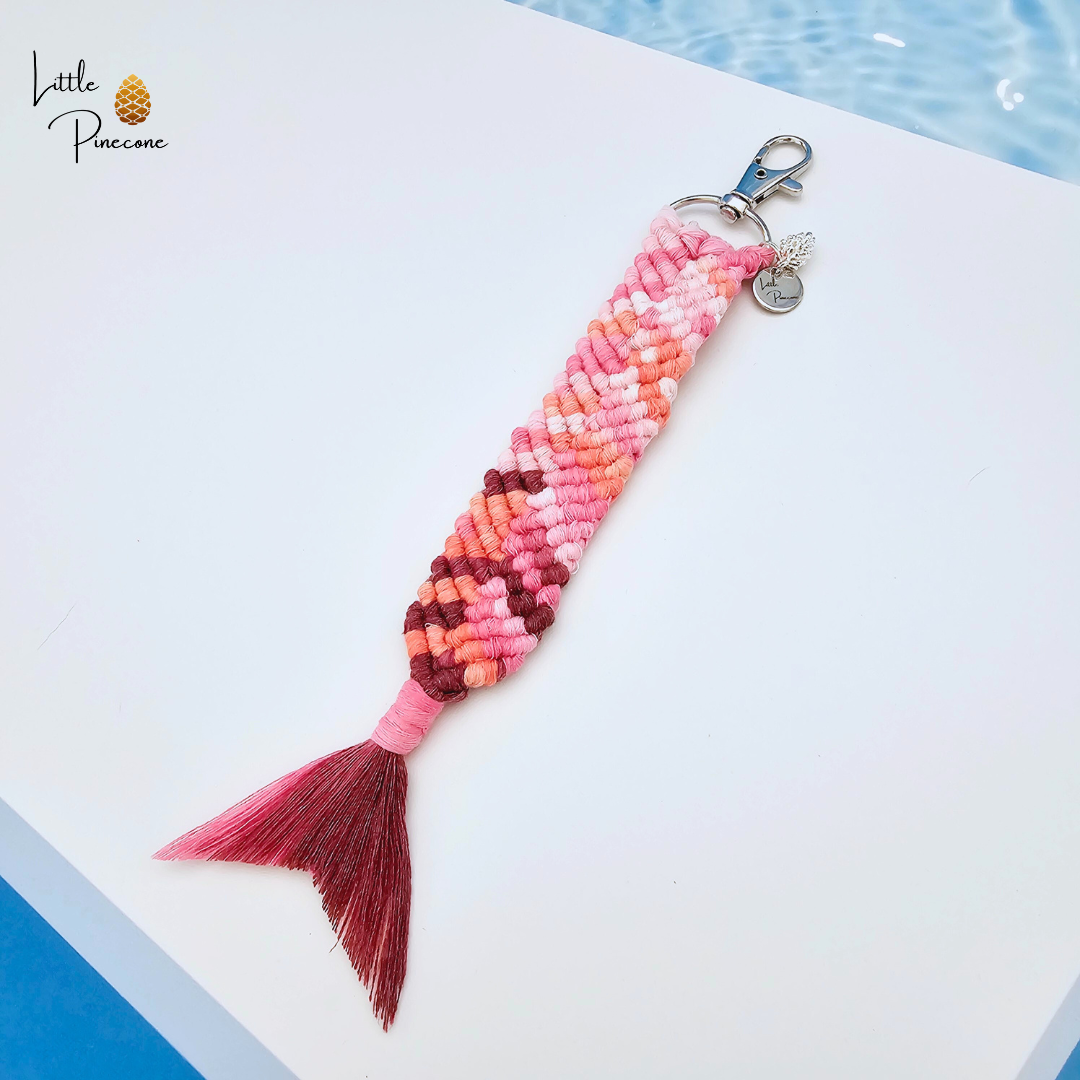 Der Taschencharm / Schlüsselanhänger ist geknüpft und handgemacht. Kleine Abweichungen zu den Fotos in Form und Farbe sind deshalb möglich.