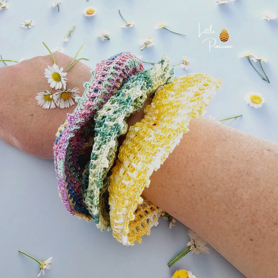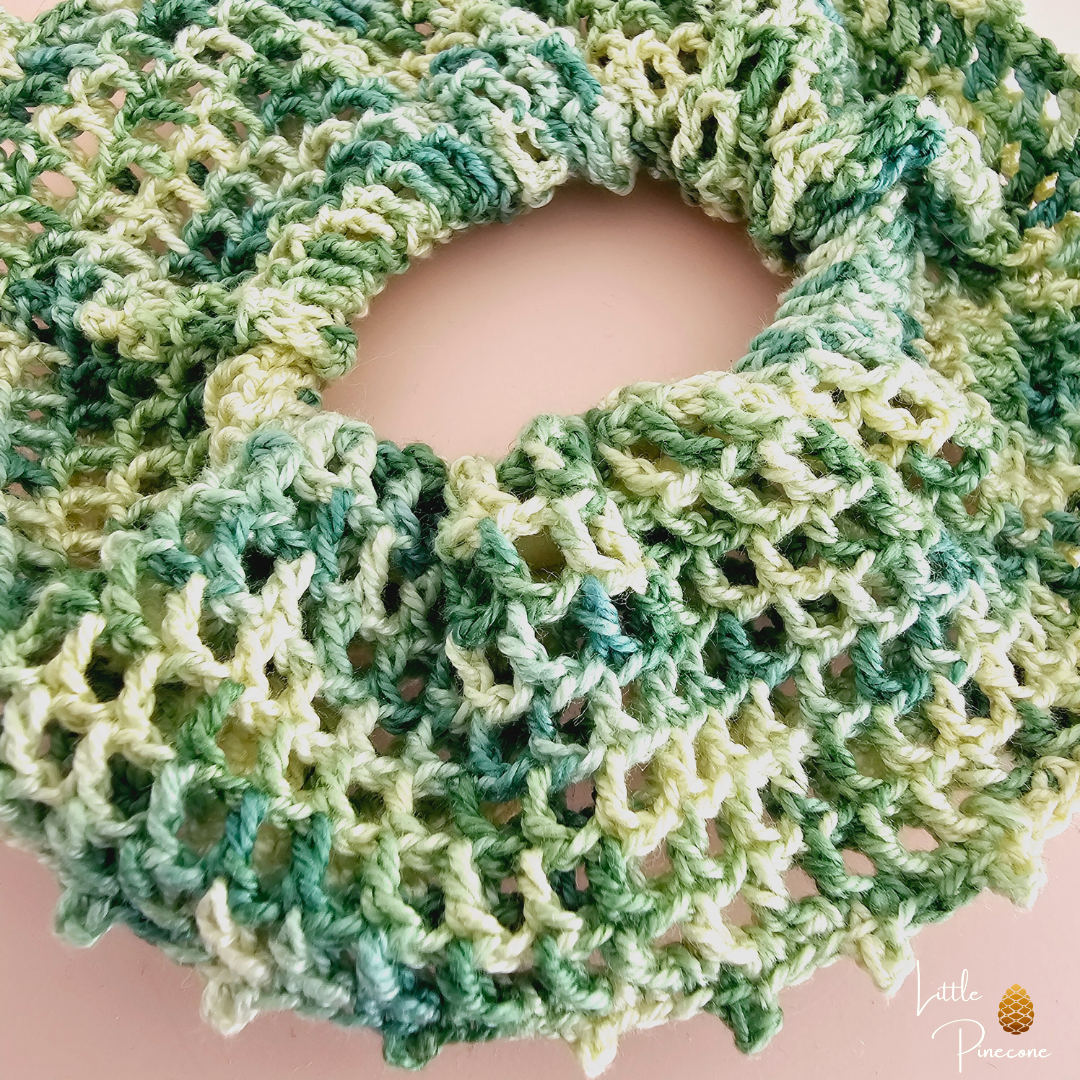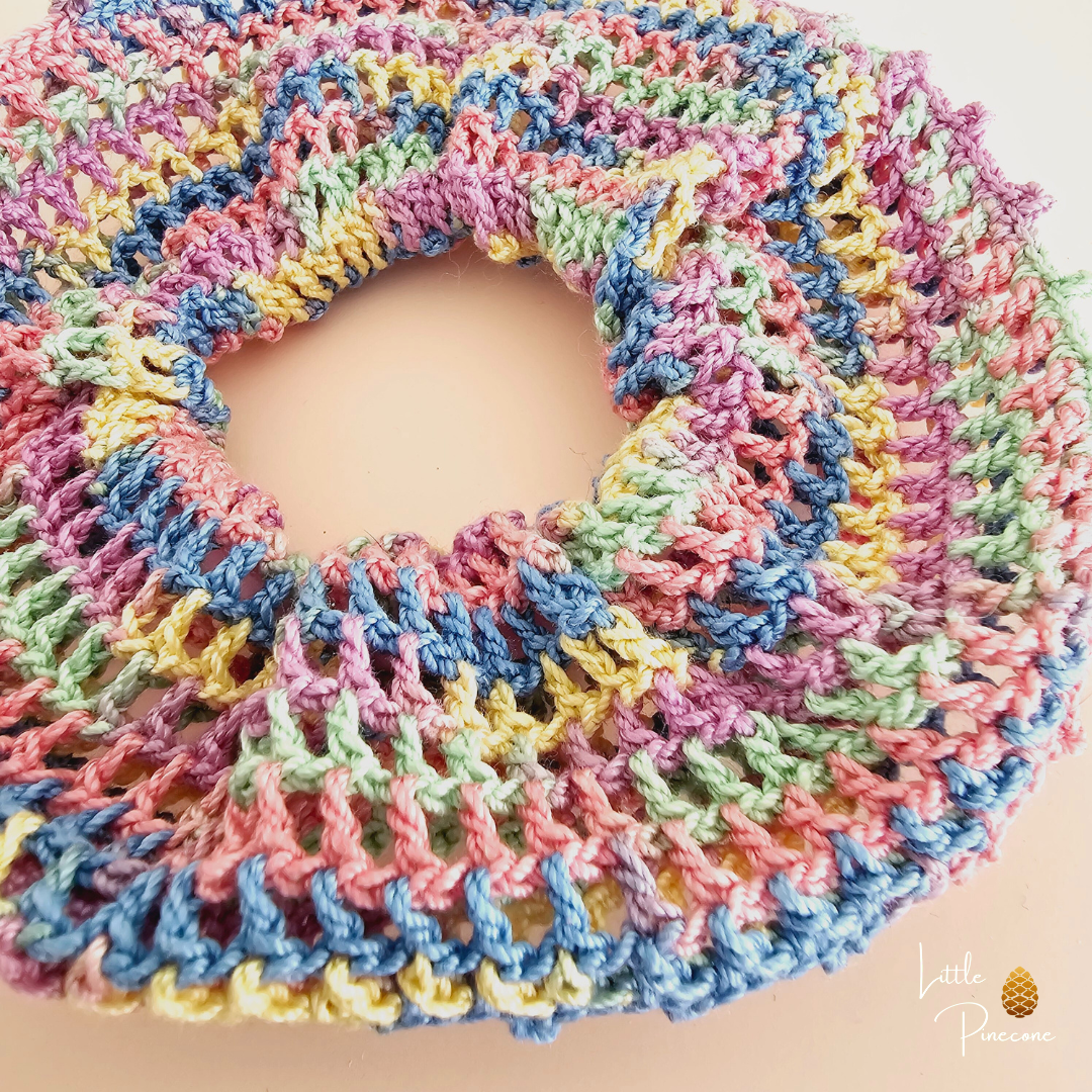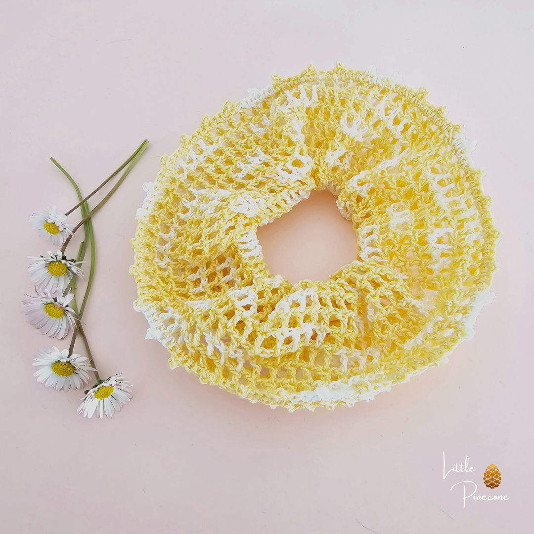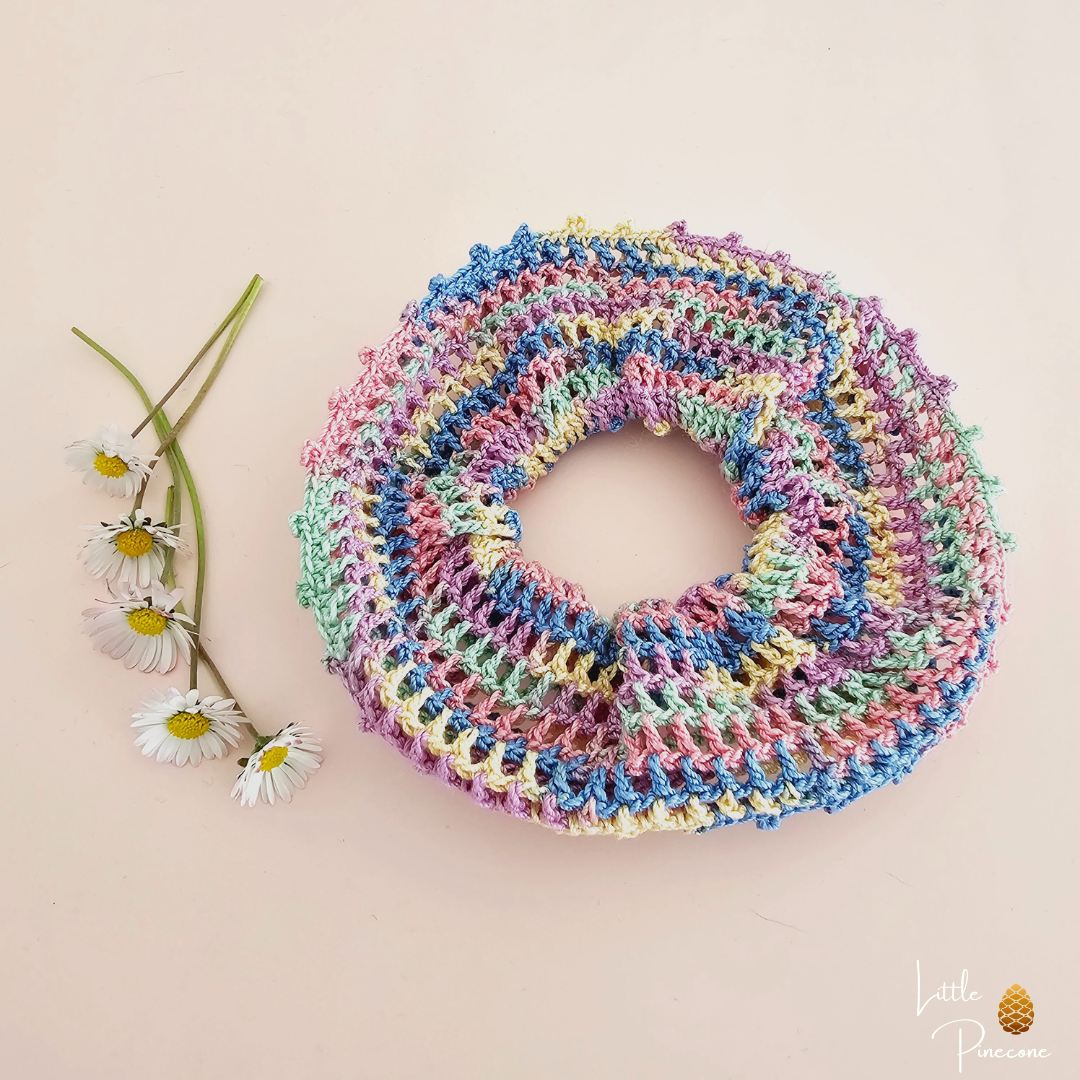 Der Scrunchie ist gehäkelt und handgemacht. Kleine Abweichungen zu den Fotos in Form und Farbe sind deshalb möglich.