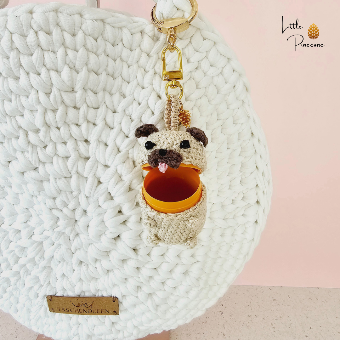 Der Taschencharm ist gehäkelt und handgemacht. Kleine Abweichungen zu den Fotos in Form und Farbe sind deshalb möglich.