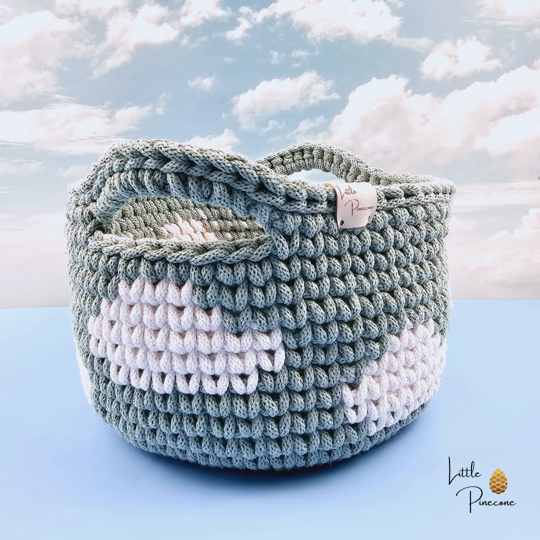 Der Korb ist gehäkelt und handgemacht. Kleine Abweichungen zu den Fotos in Form und Farbe sind deshalb möglich.