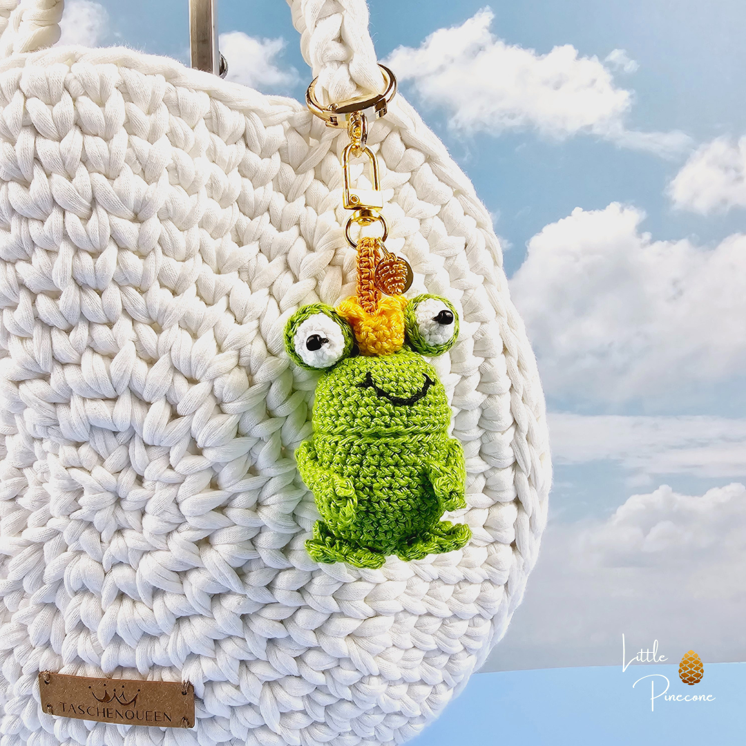 Der Taschencharm ist gehäkelt und handgemacht. Kleine Abweichungen zu den Fotos in Form und Farbe sind deshalb möglich.