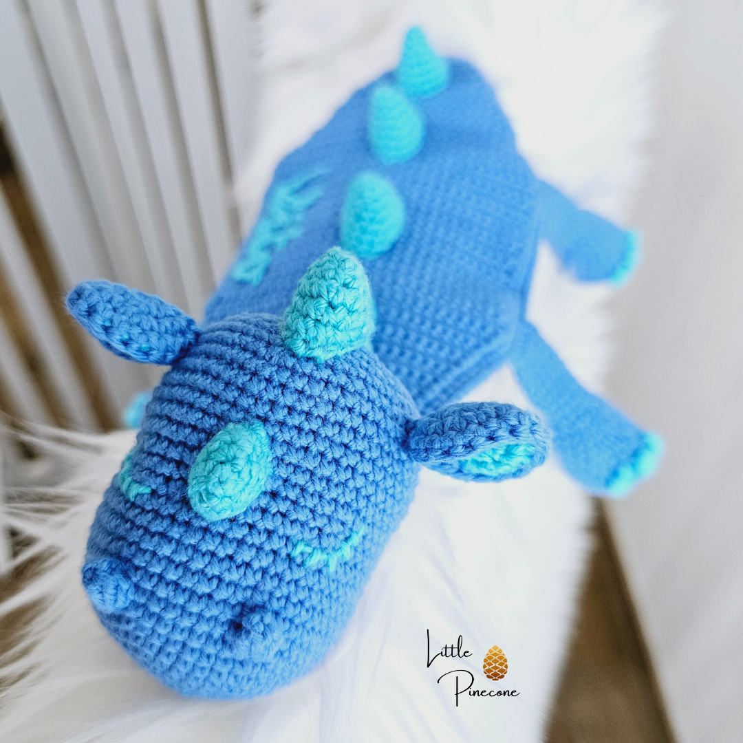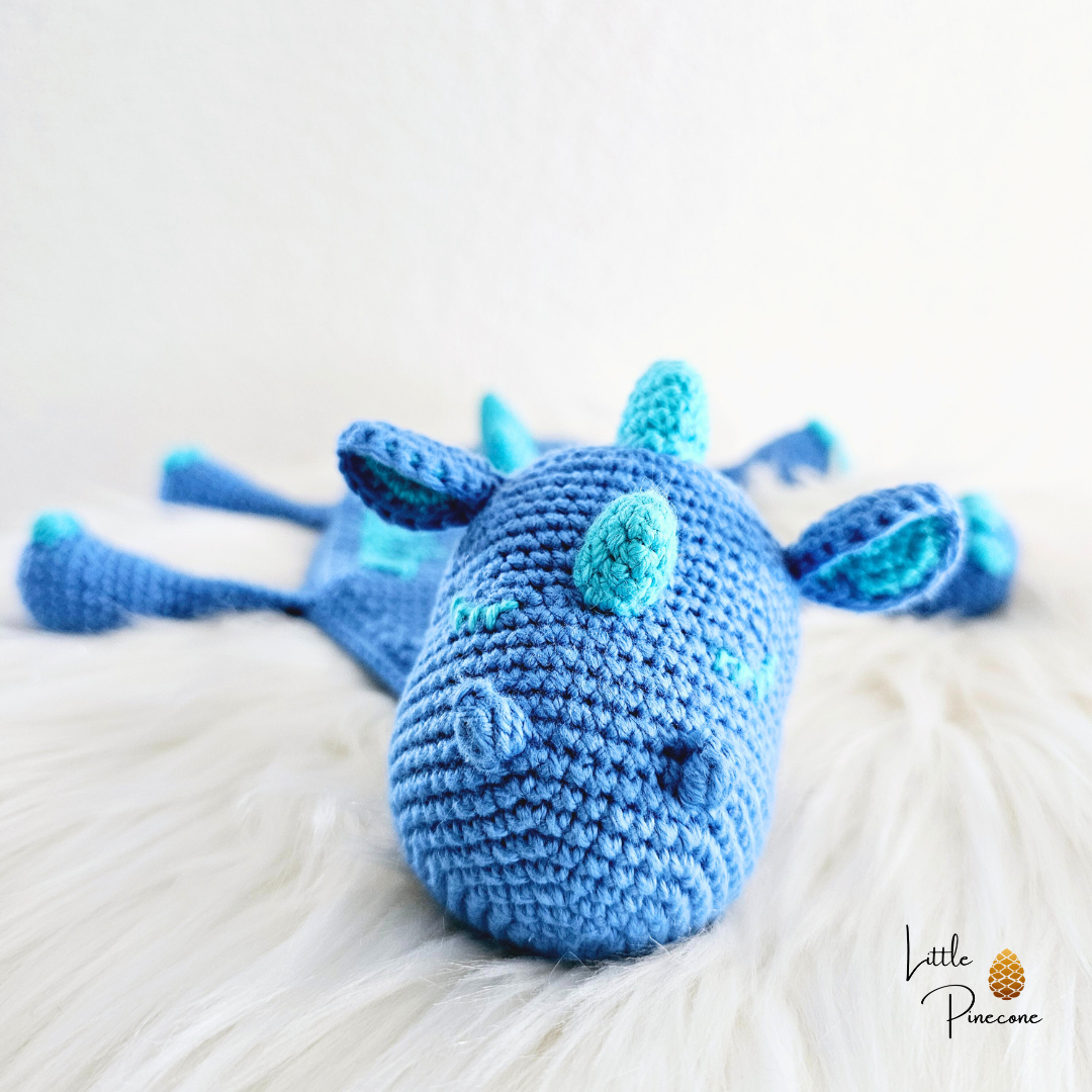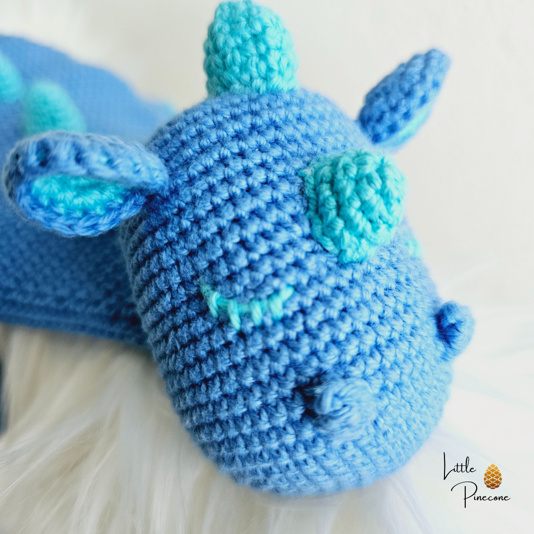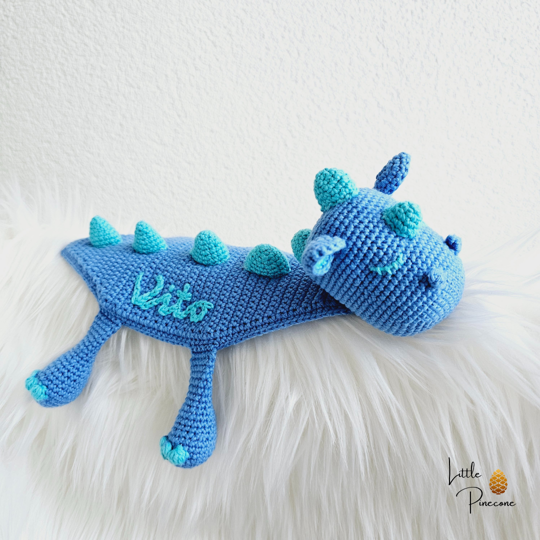 Der Drache ist leicht abgeändert nach einer Anleitung von Hobbii gehäkelt und handgemacht. Kleine Abweichungen zu den Fotos in Form und Farbe sind deshalb möglich.