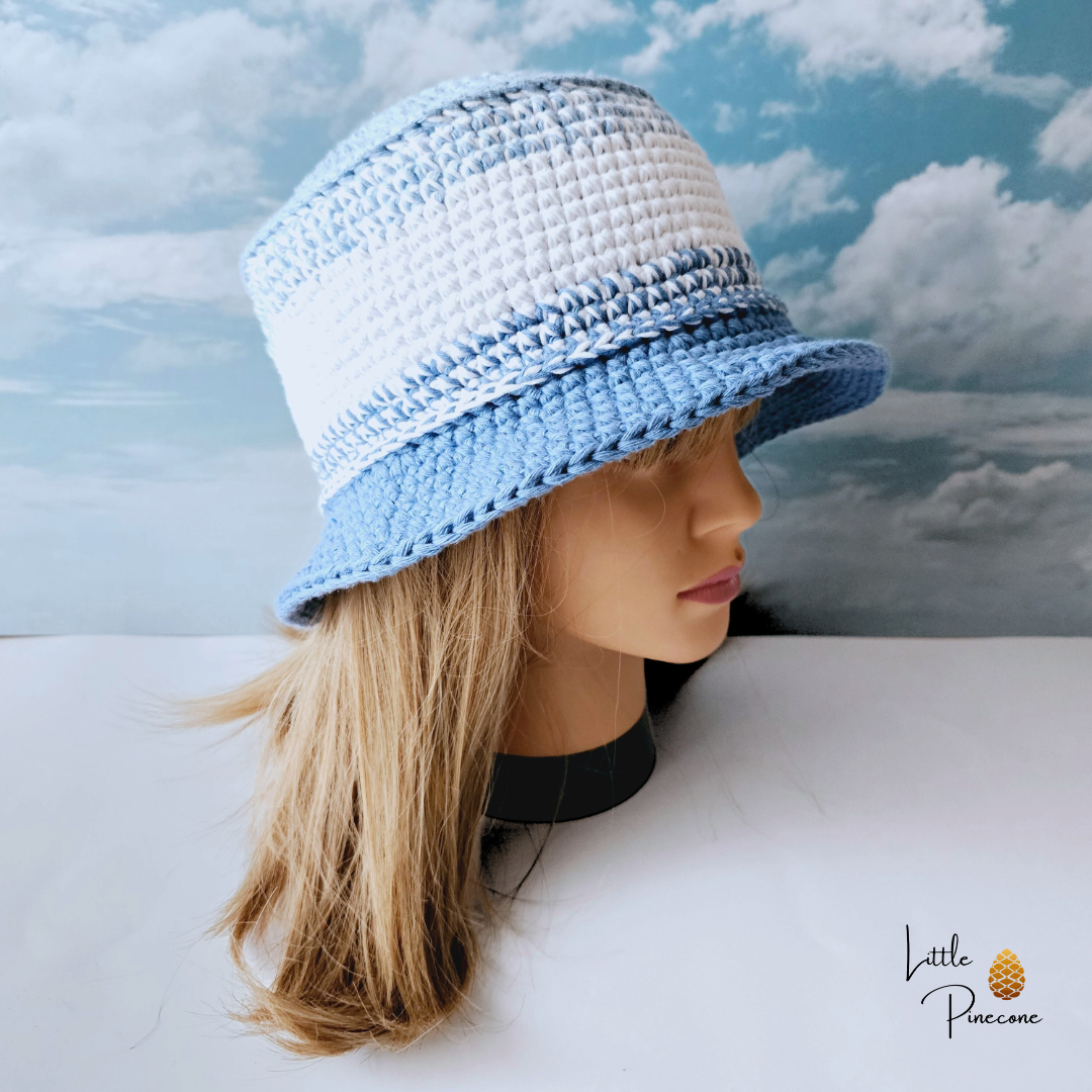 Der Bucket Hat ist gehäkelt und handgemacht. Kleine Abweichungen zu den Fotos in Form und Farbe sind deshalb möglich.