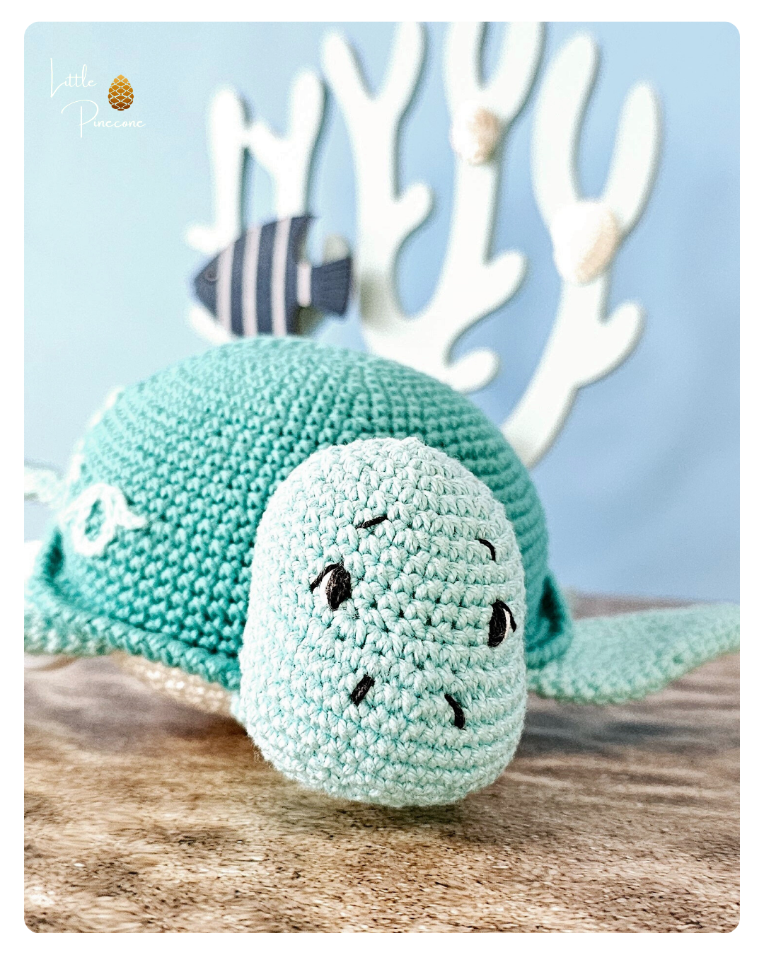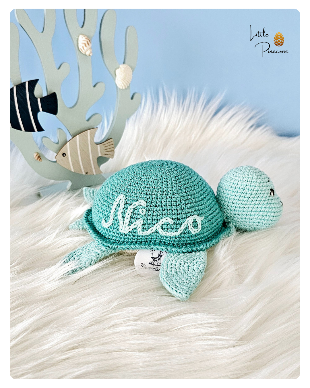 Die Schildkröte ist gehäkelt und handgemacht. Kleine Abweichungen zu den Fotos in Form und Farbe sind deshalb möglich.
