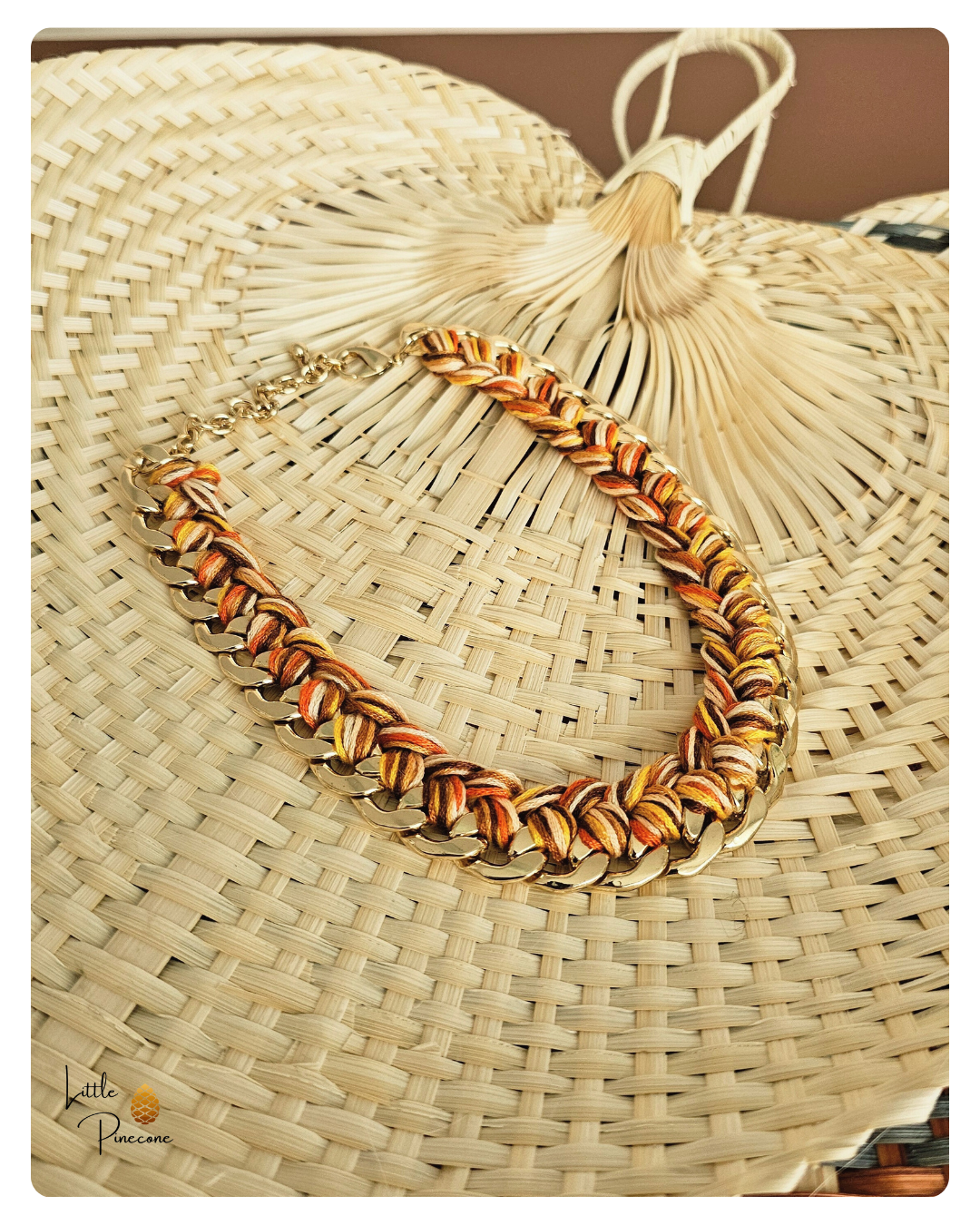 Die Kettenbordüre ist geknüpft und handgemacht. Kleine Abweichungen zu den Fotos in Form, Farbe und Grösse sind deshalb möglich.