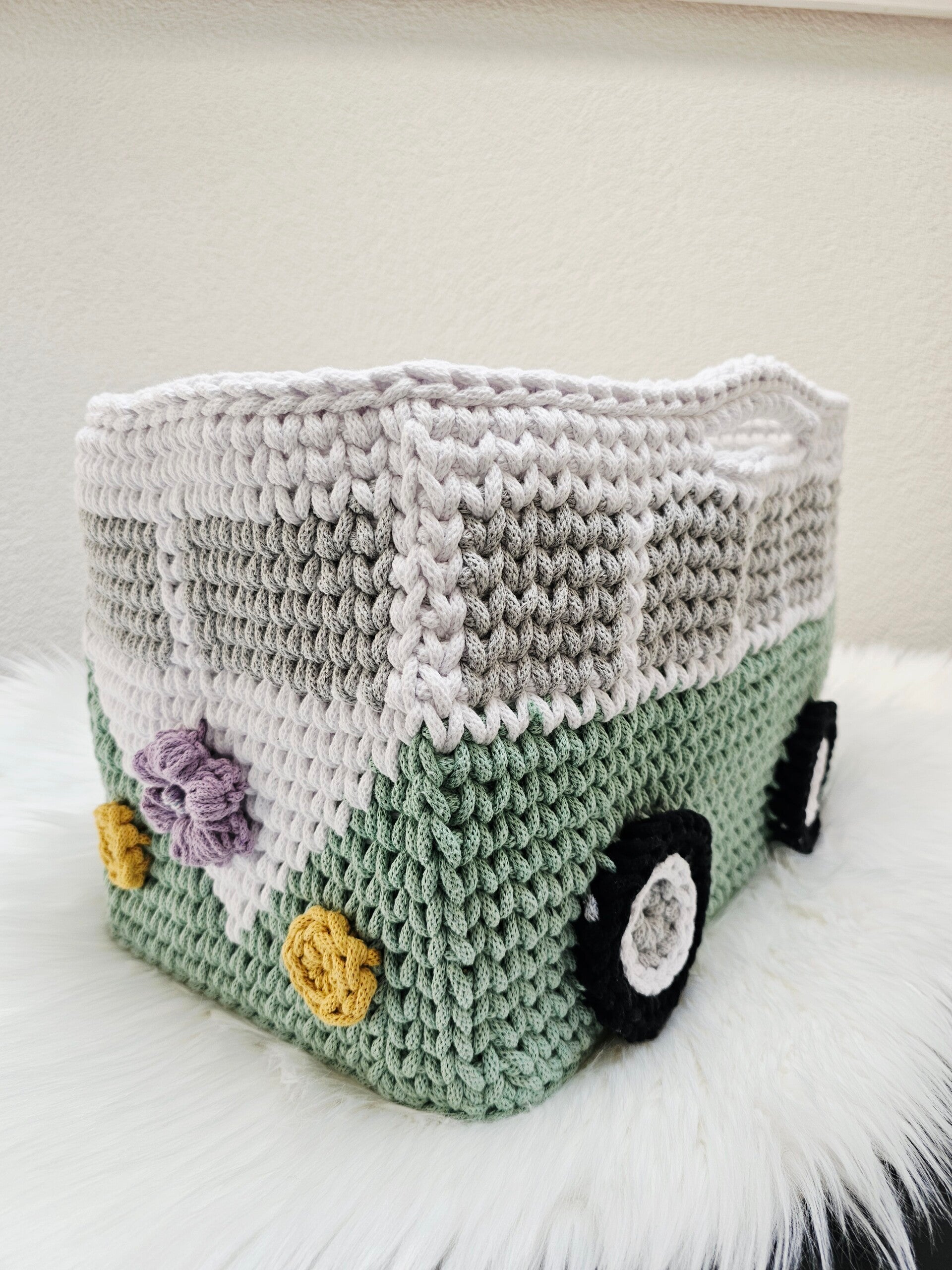 Der Korb ist gehäkelt und handgemacht. Kleine Abweichungen zu den Fotos in Form und Farbe sind deshalb möglich.
