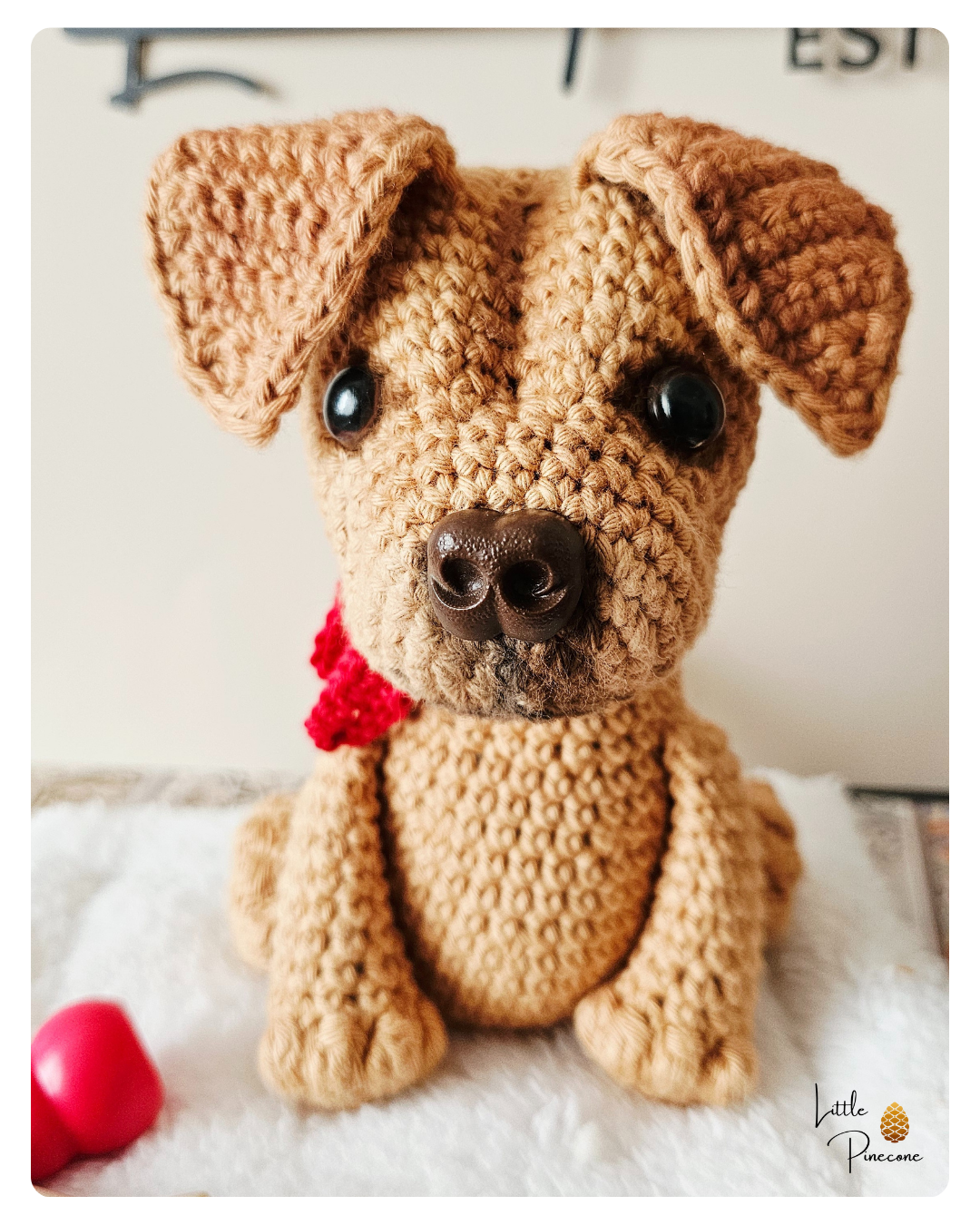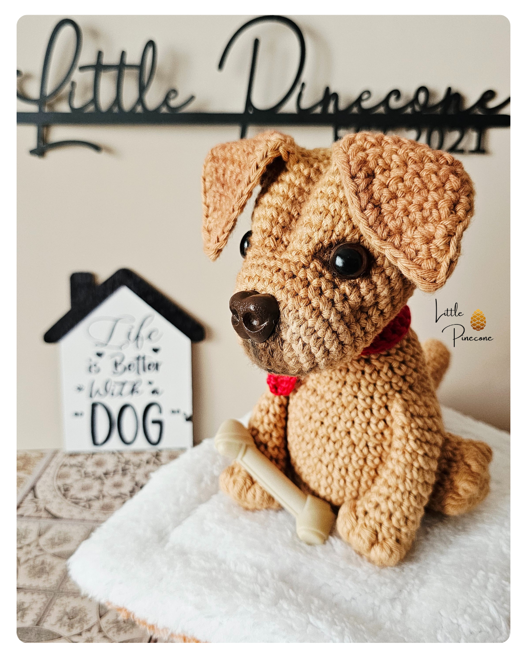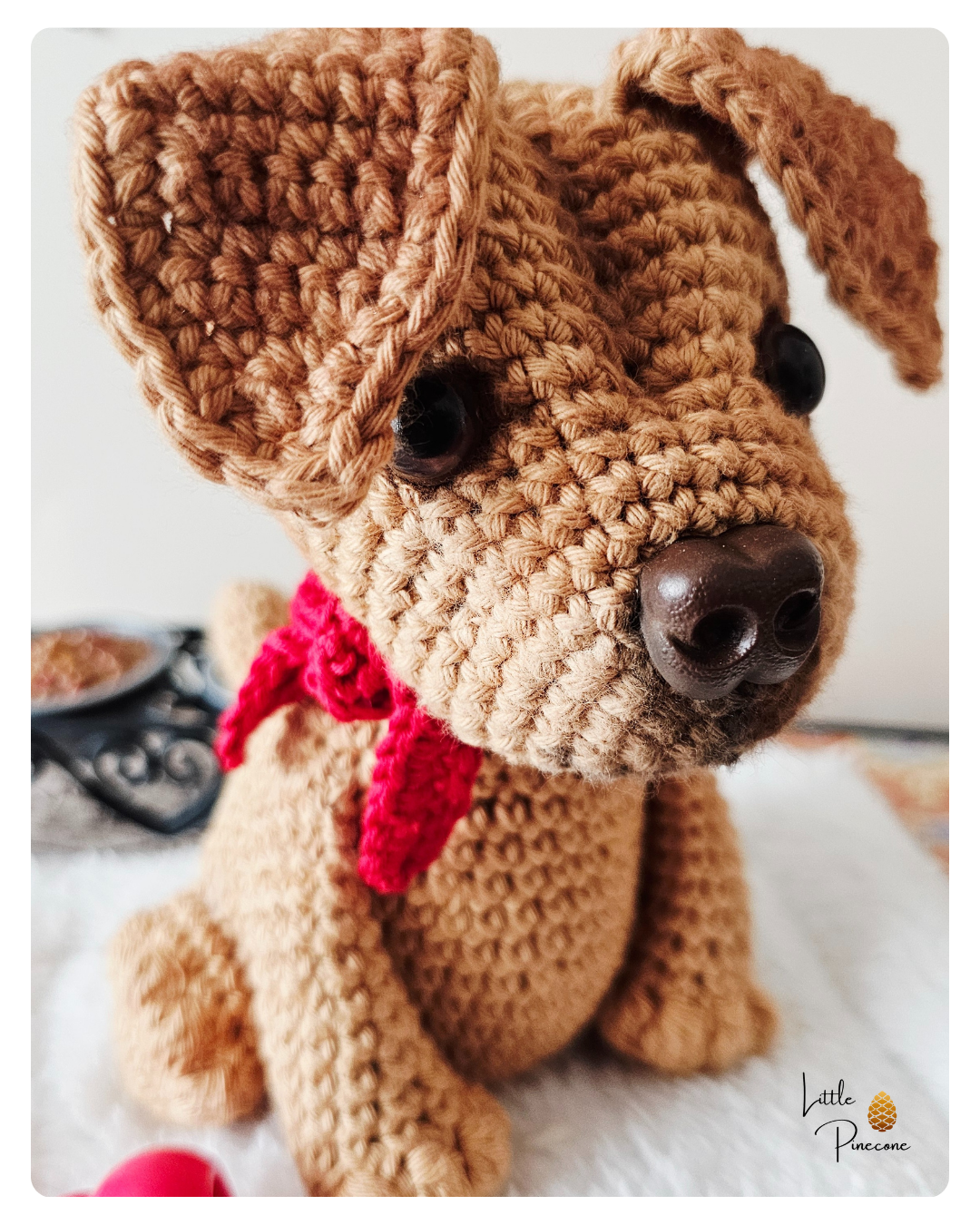 Der Labrador-Shar Pei Mix ist auf Basis einer Anleitung von Larana Croshet gehäkelt und handgemacht. Kleine Abweichungen zu den Fotos in Form und Farbe sind deshalb möglich.