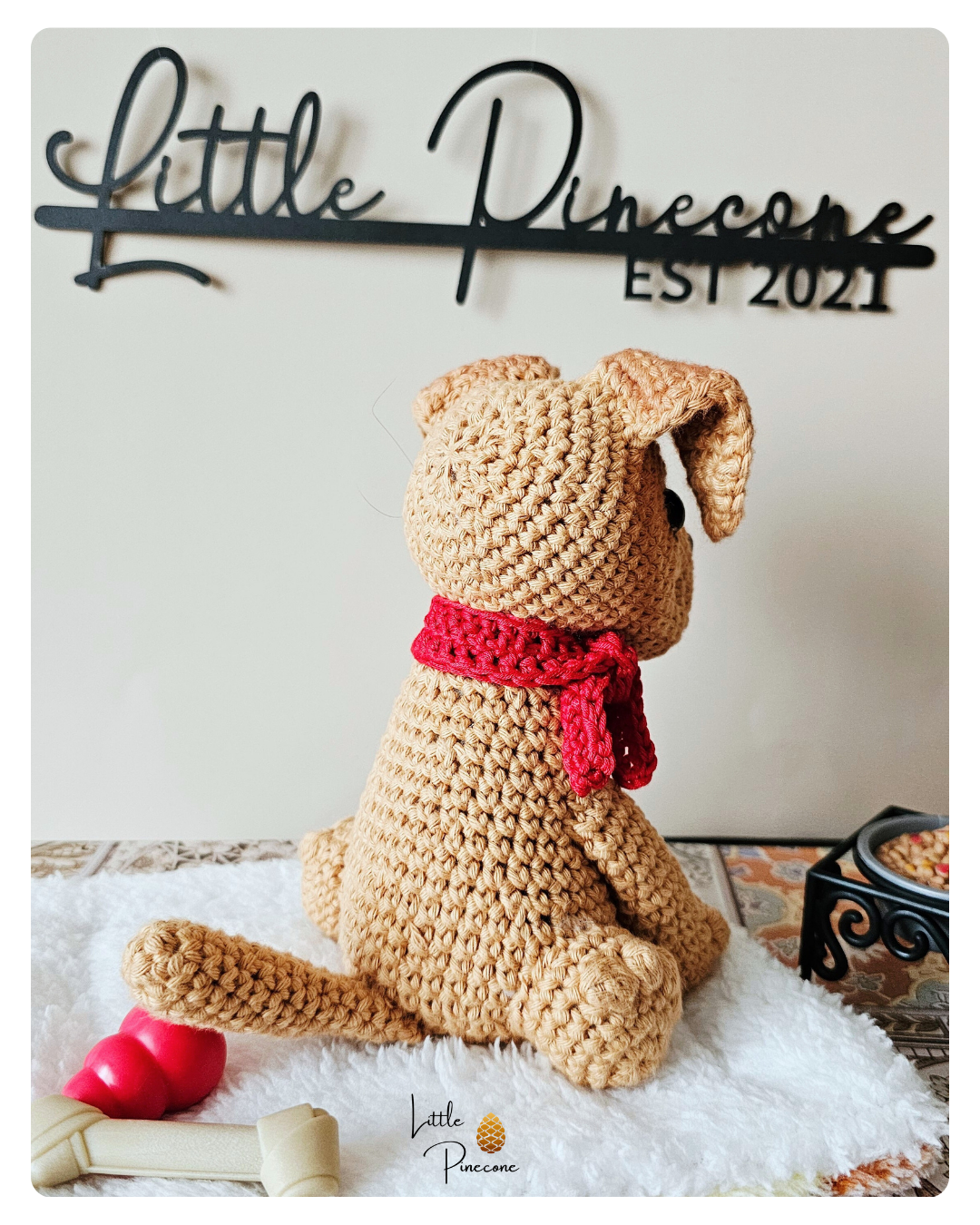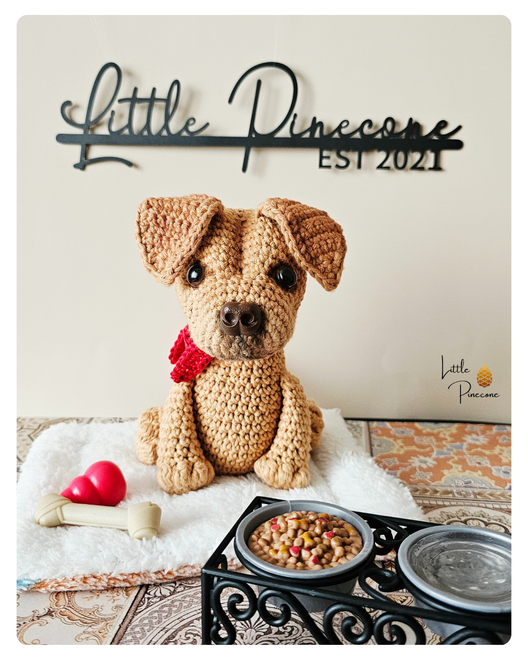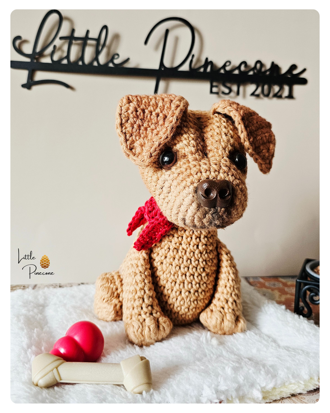 Der Labrador-Shar Pei Mix ist auf Basis einer Anleitung von Larana Croshet gehäkelt und handgemacht. Kleine Abweichungen zu den Fotos in Form und Farbe sind deshalb möglich.