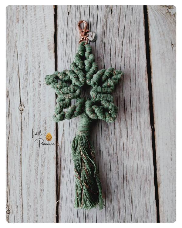 Der Taschencharm / Schlüsselanhänger ist geknüpft und handgemacht. Kleine Abweichungen zu den Fotos in Form und Farbe sind deshalb möglich.
