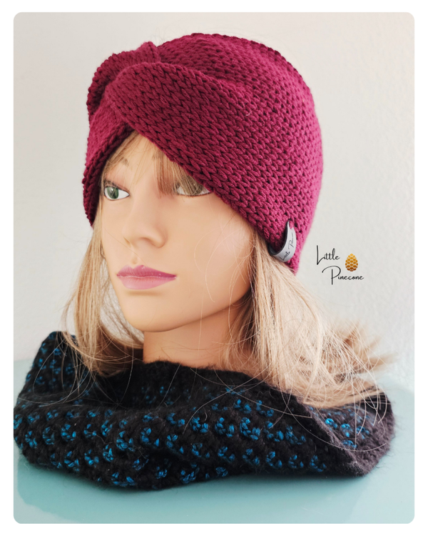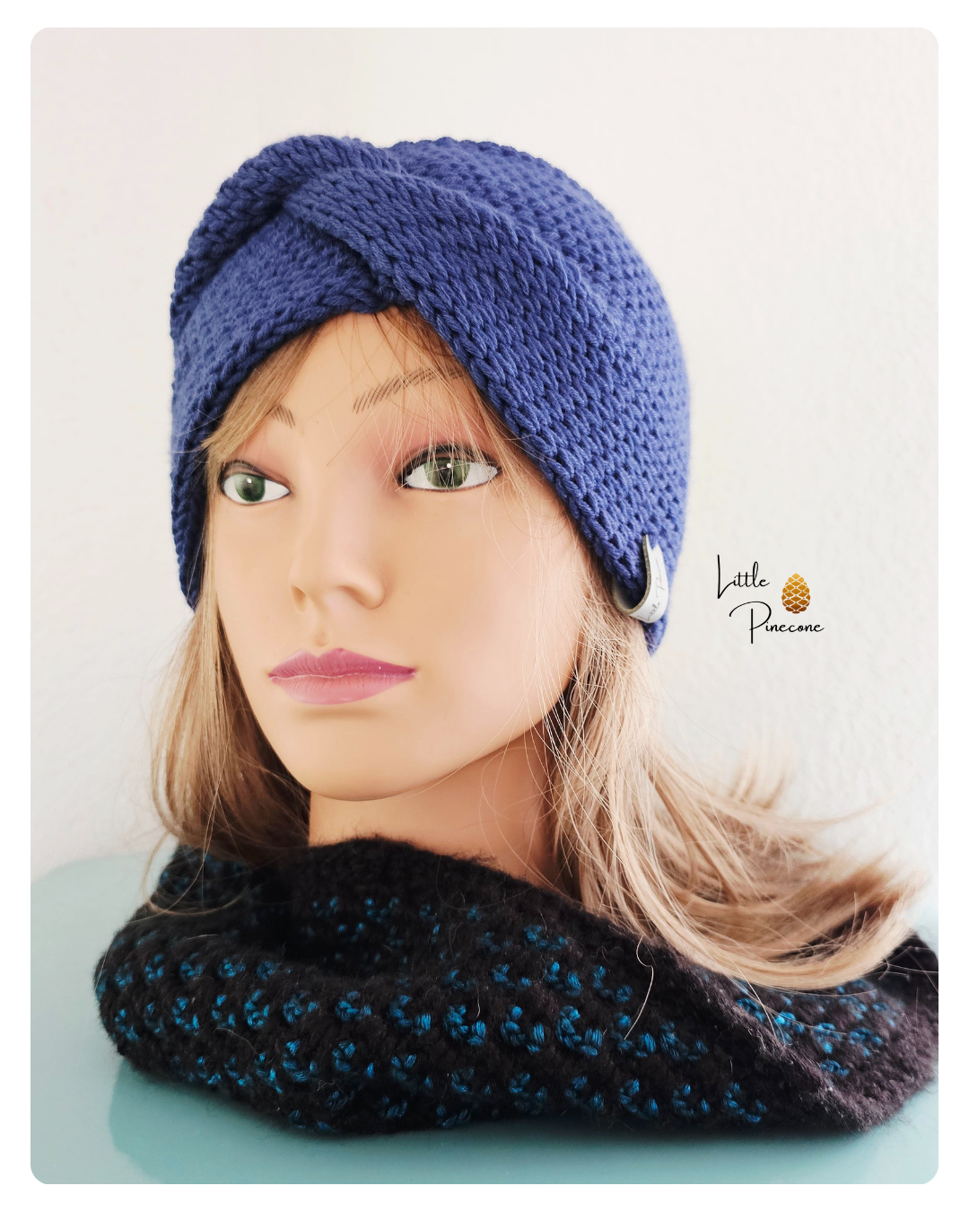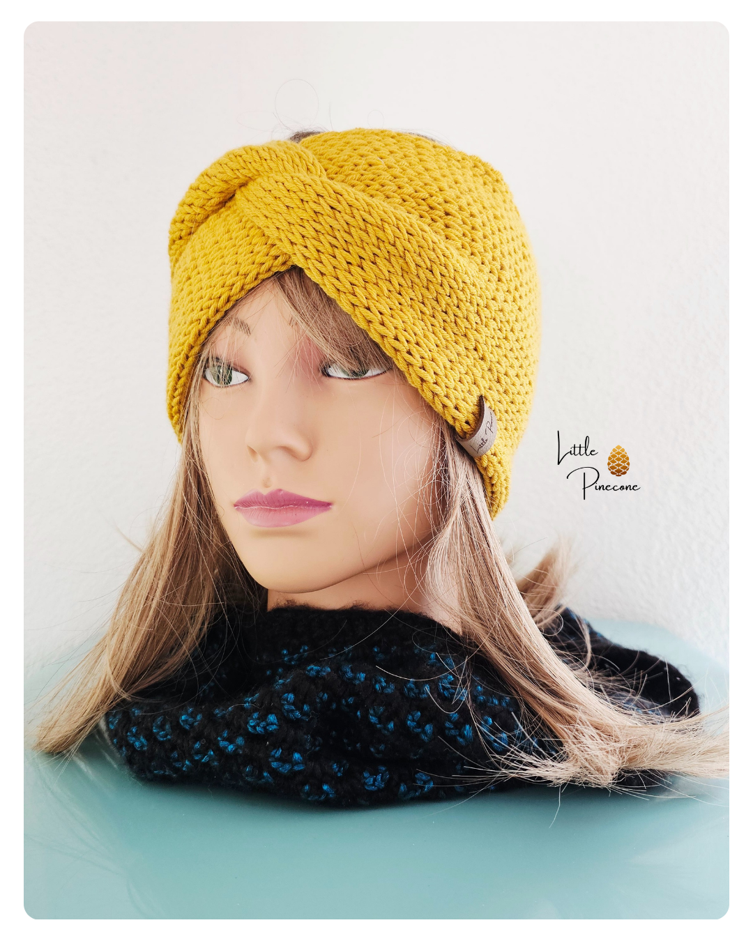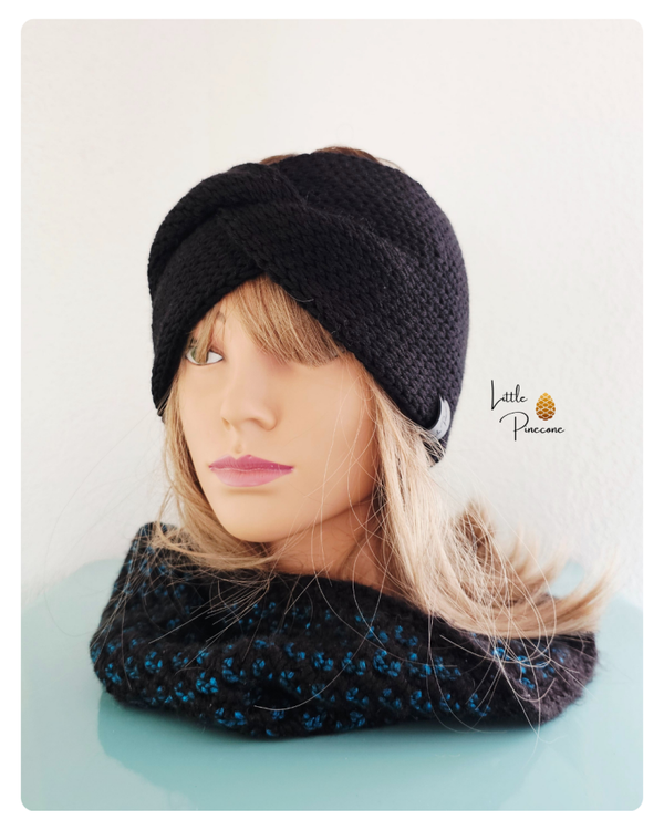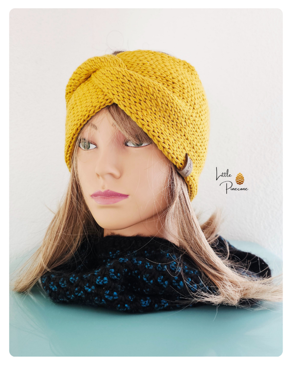 Das Stirnband ist mit der Handkurbel gestrickt und von Hand bestickt. Kleine Abweichungen zu den Fotos in Form und Farbe sind deshalb möglich.