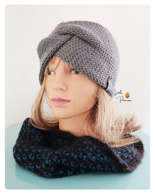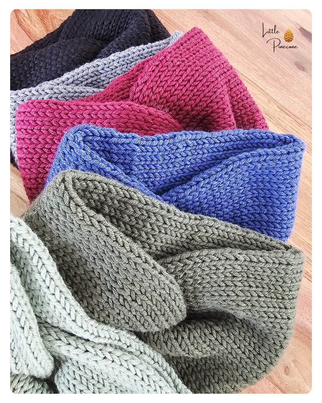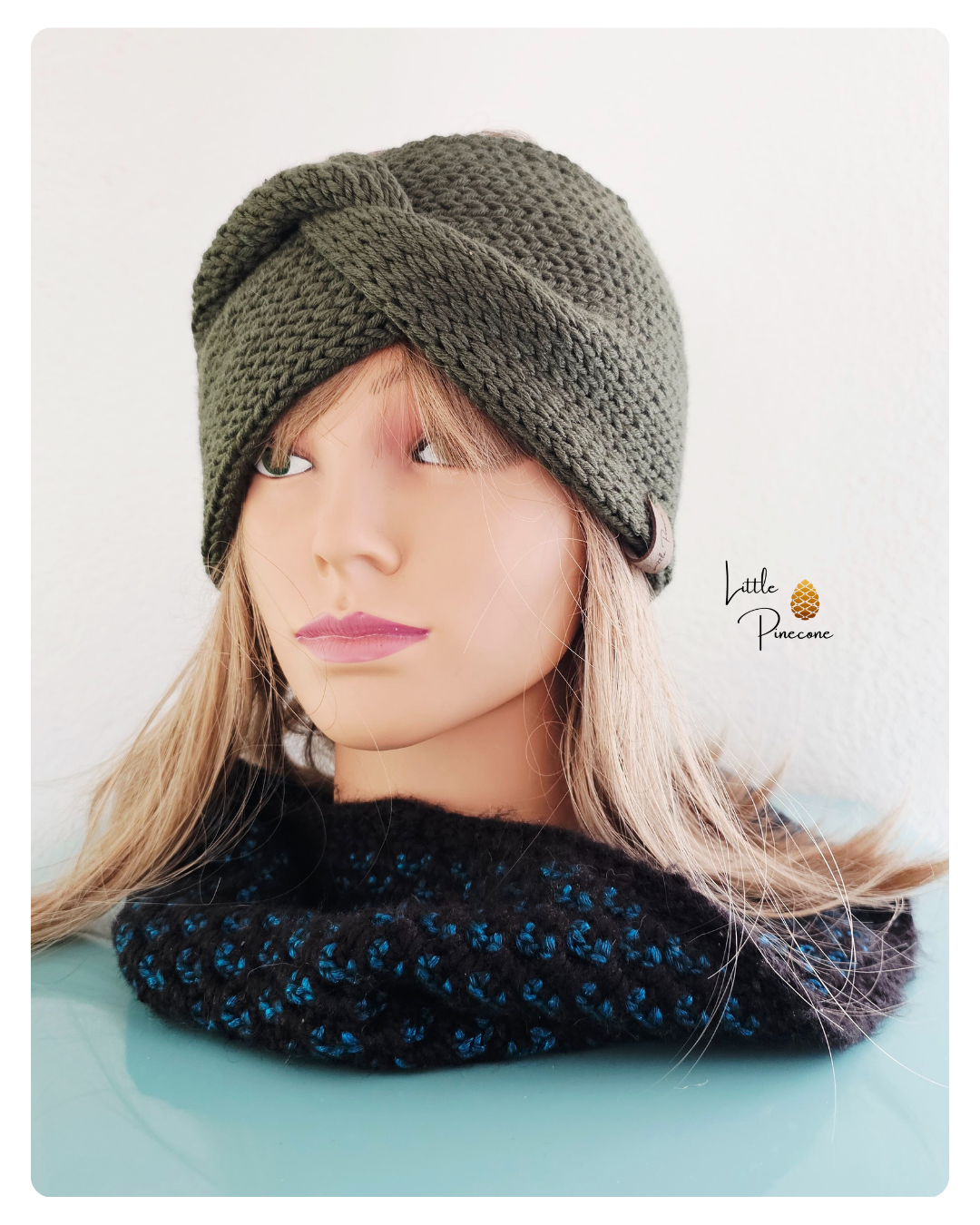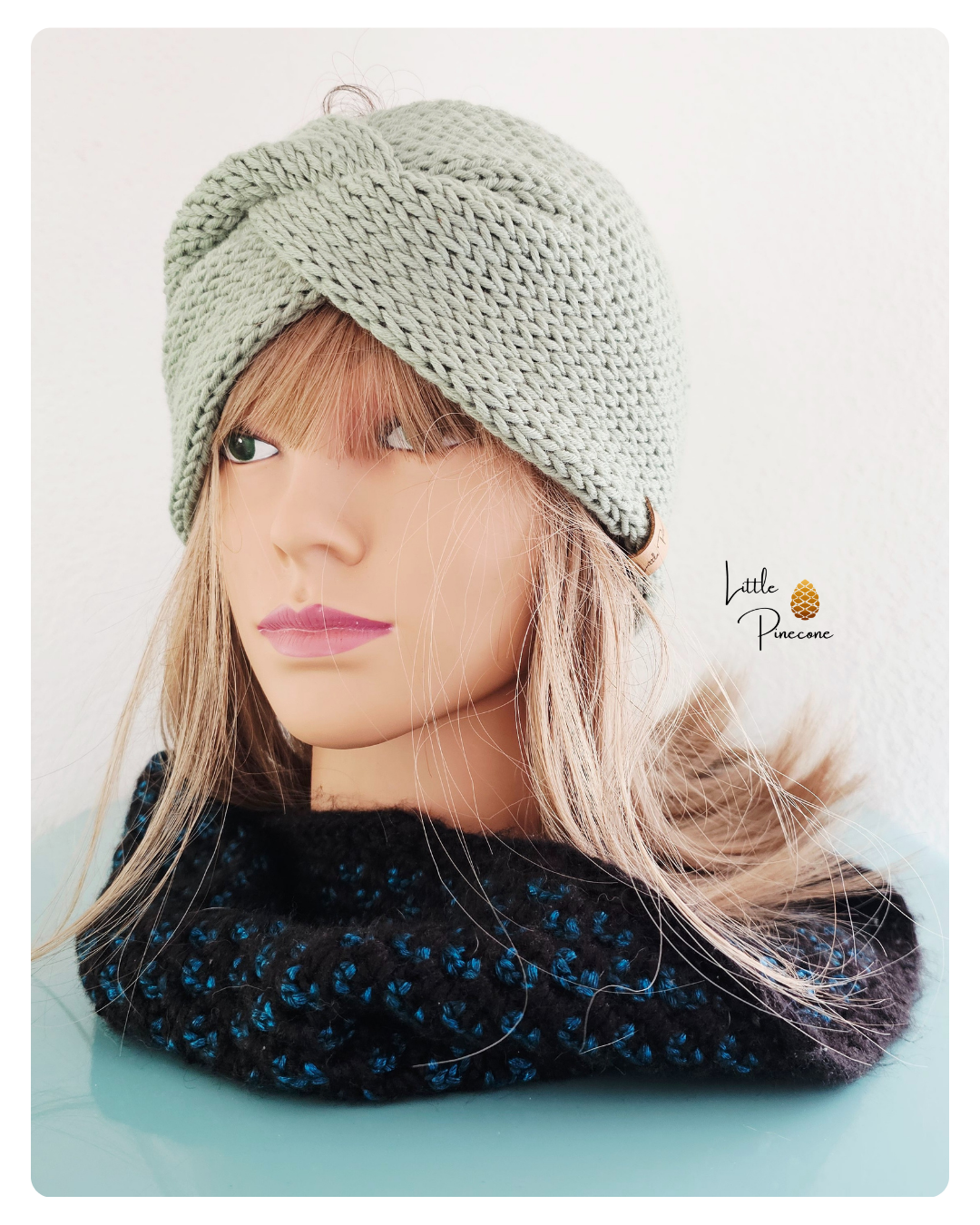 Das Stirnband ist mit der Handkurbel gestrickt und von Hand bestickt. Kleine Abweichungen zu den Fotos in Form und Farbe sind deshalb möglich.