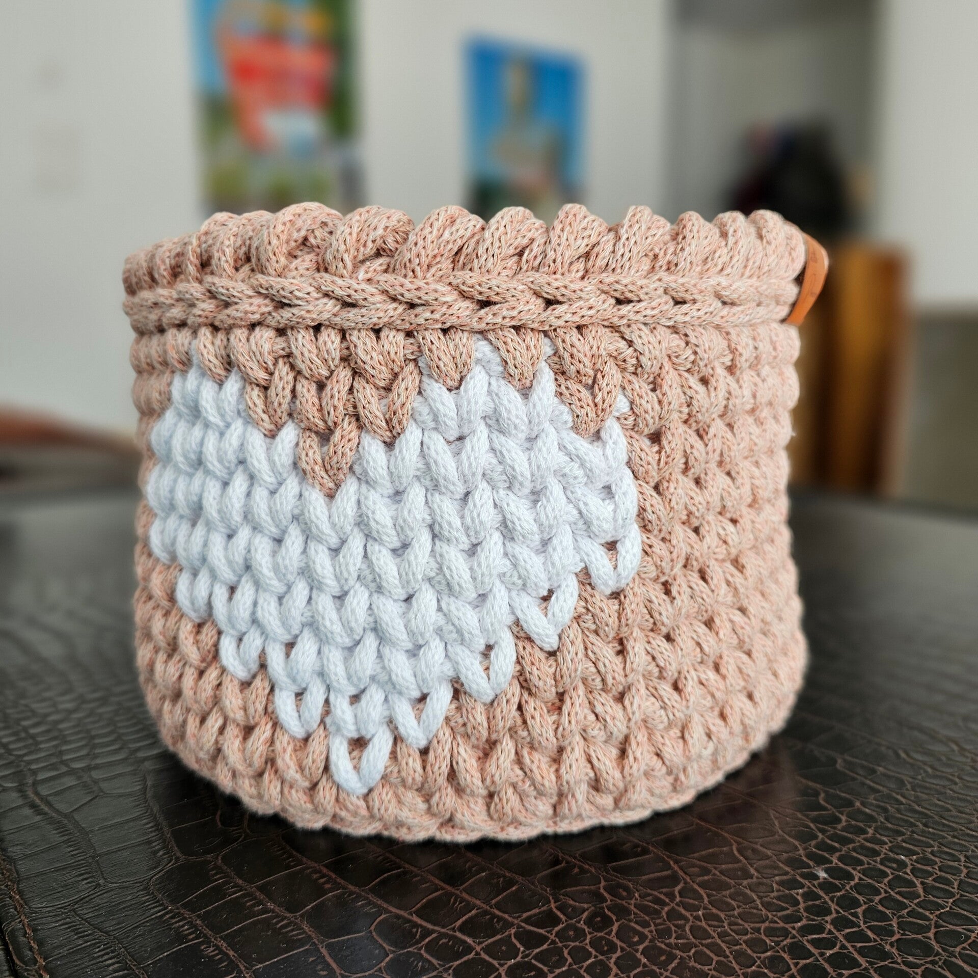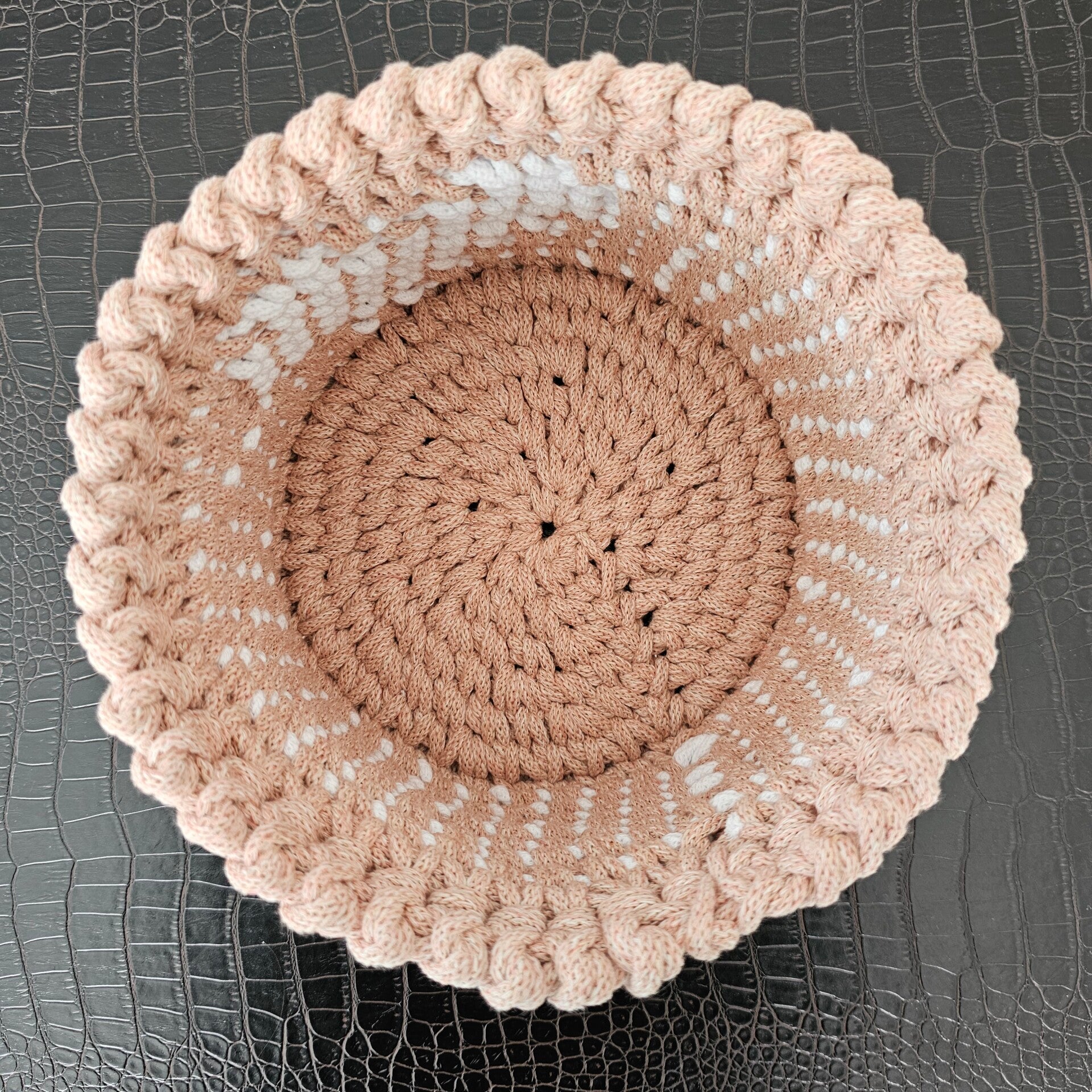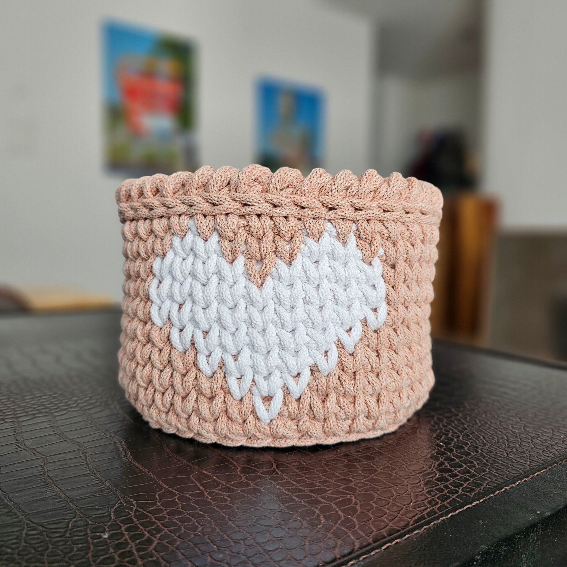 Der Korb ist gehäkelt und handgemacht. Kleine Abweichungen zu den Fotos in Form und Farbe sind deshalb möglich.