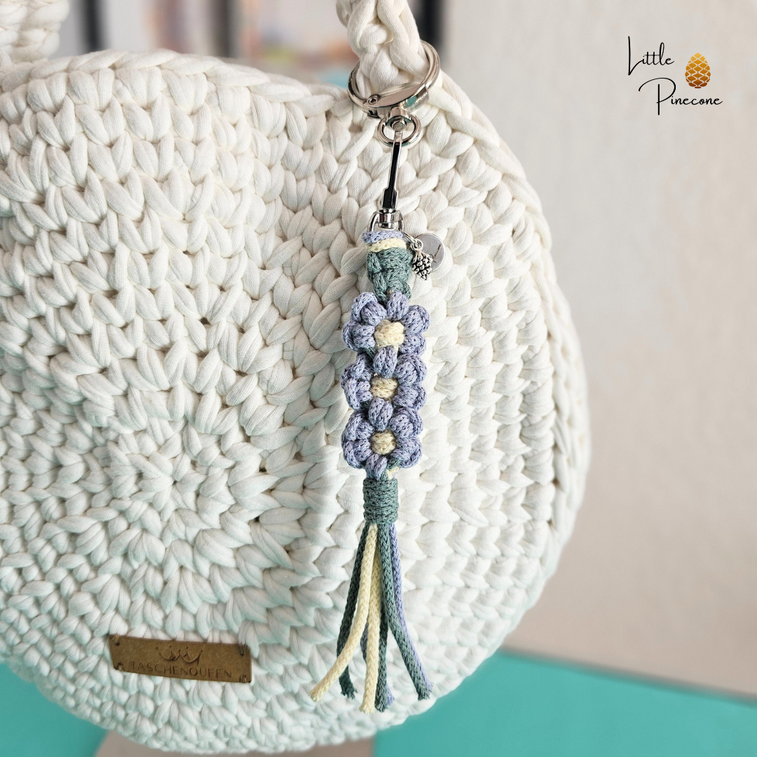 Der Anhänger ist geknüpft und handgemacht. Kleine Abweichungen zu den Fotos in Form und Farbe sind deshalb möglich.