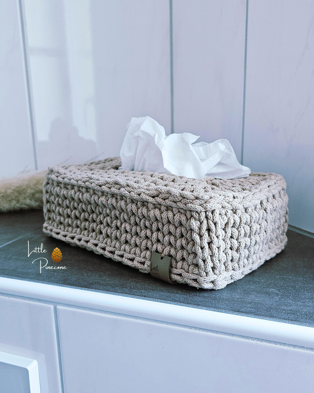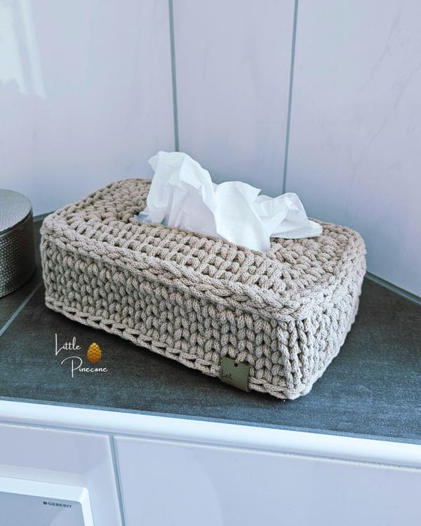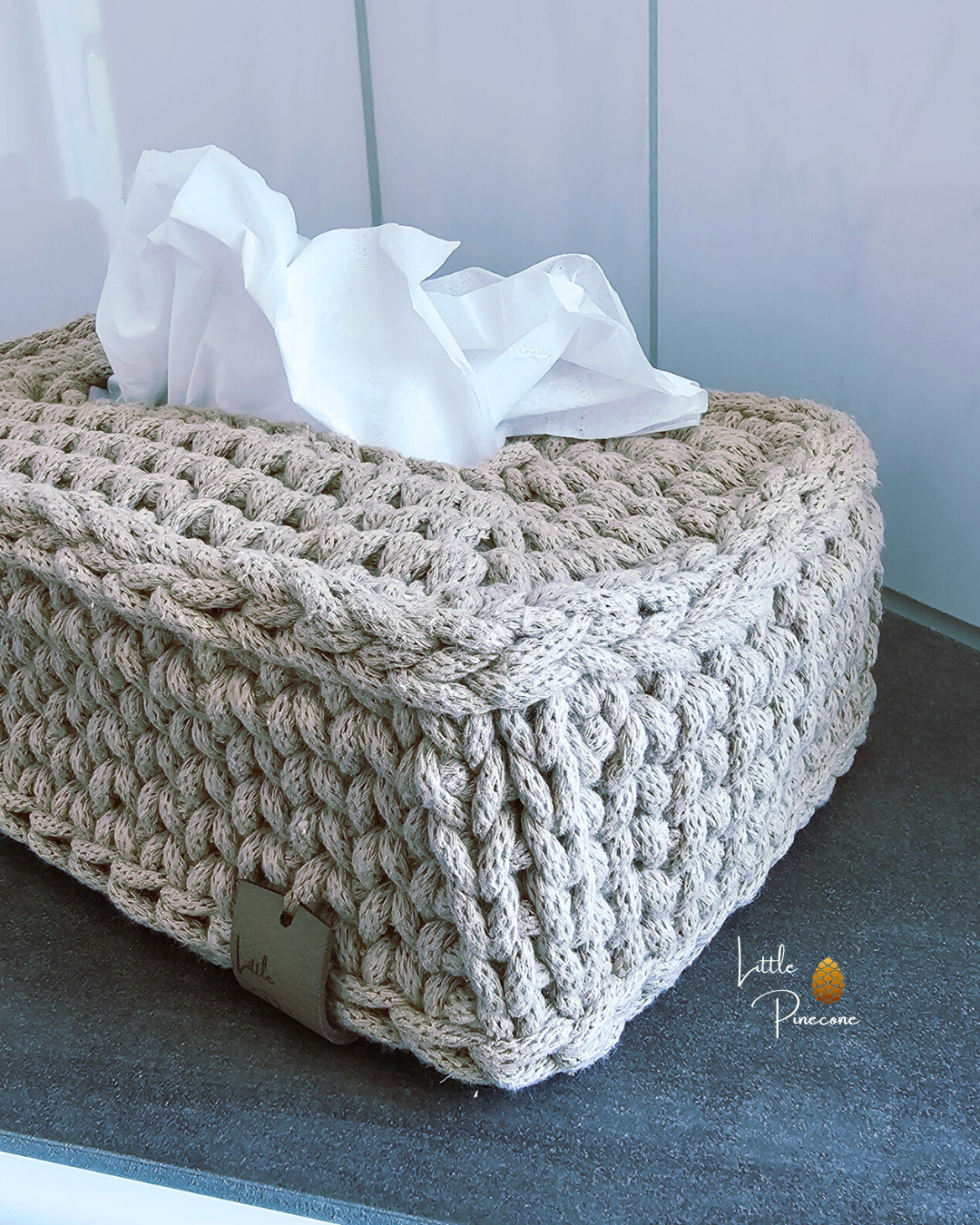 Die Abdeckung ist gehäkelt und handgemacht. Kleine Abweichungen zu den Fotos in Form und Farbe sind deshalb möglich.