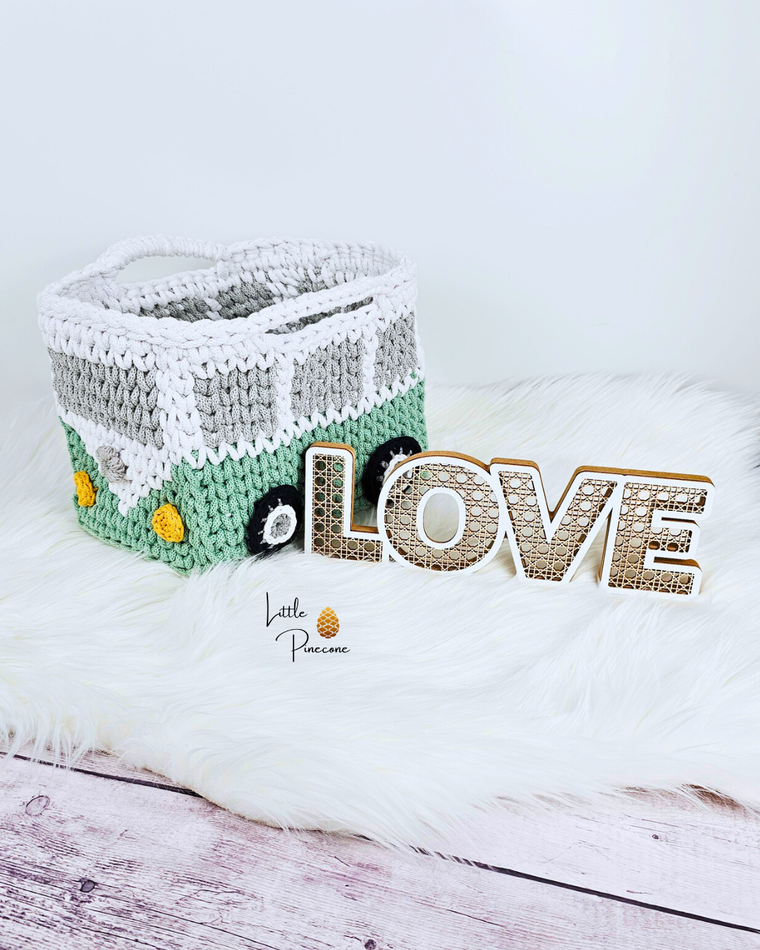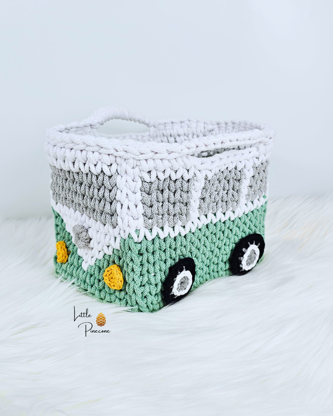 Der Korb ist gehäkelt und handgemacht. Kleine Abweichungen zu den Fotos in Form und Farbe sind deshalb möglich.